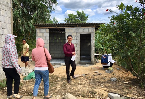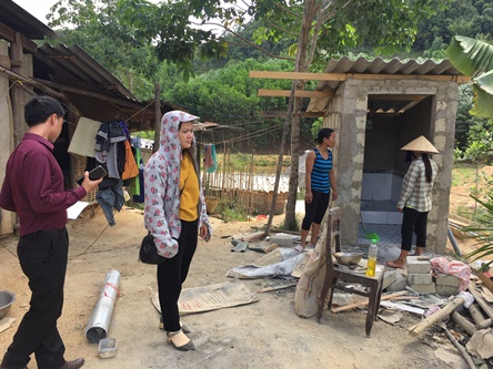 Cán bộ TTKSBT nghiệm thu và chi trả kinh phí xây dựng nhà tiêu hợp vệ sinh tại xã Hương Lâm