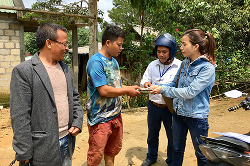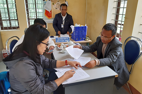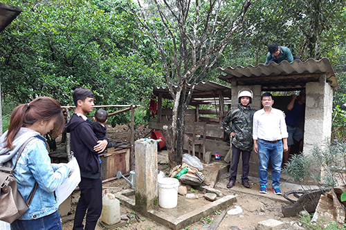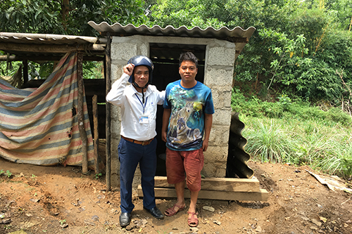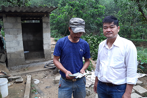 Cán bộ Trung tâm KSBT nghiệm thu và chi trả kinh phí hỗ trợ xây dựng nhà tiêu hợp vệ sinh tại xã Hương Lâm