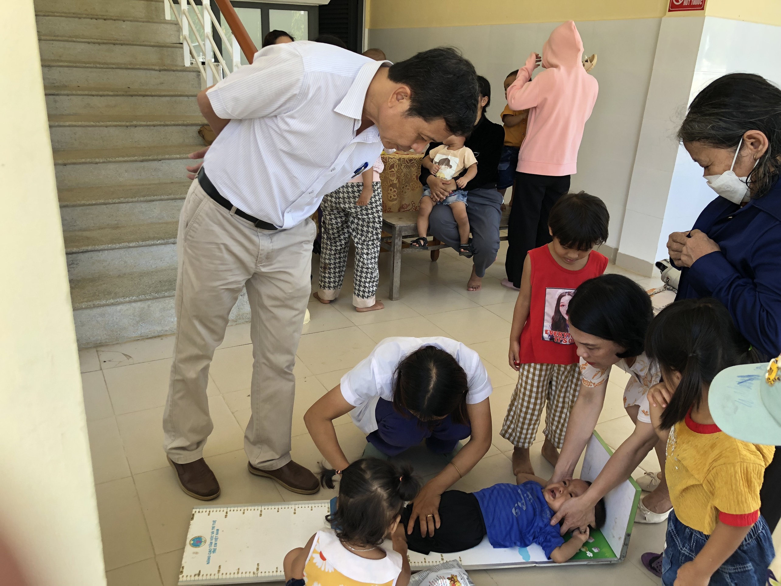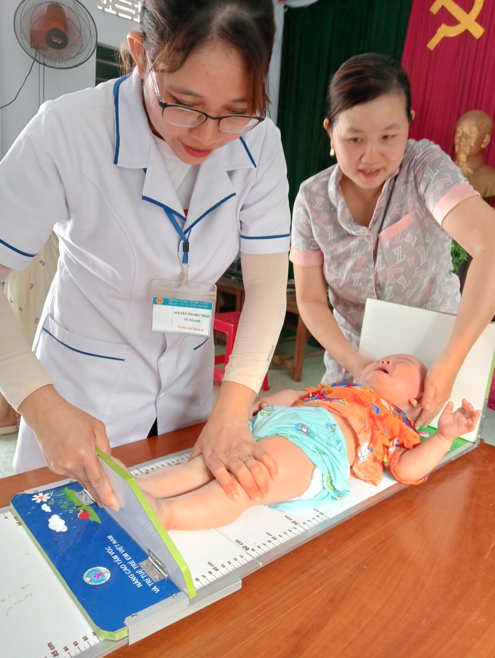 Đo chiều dài nằm cho trẻ dưới 24 tháng tuổi tại TYT xã Vinh Thanh