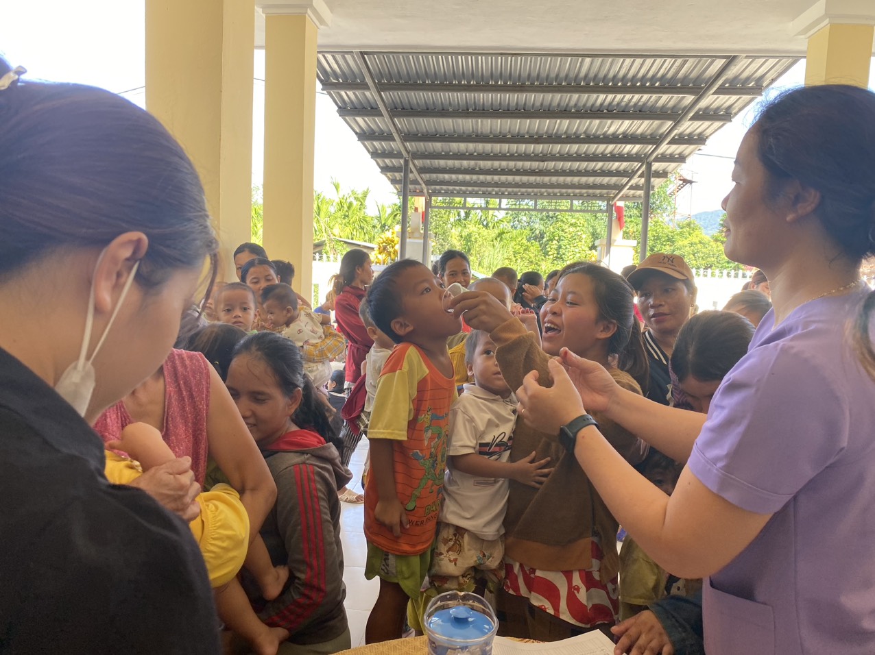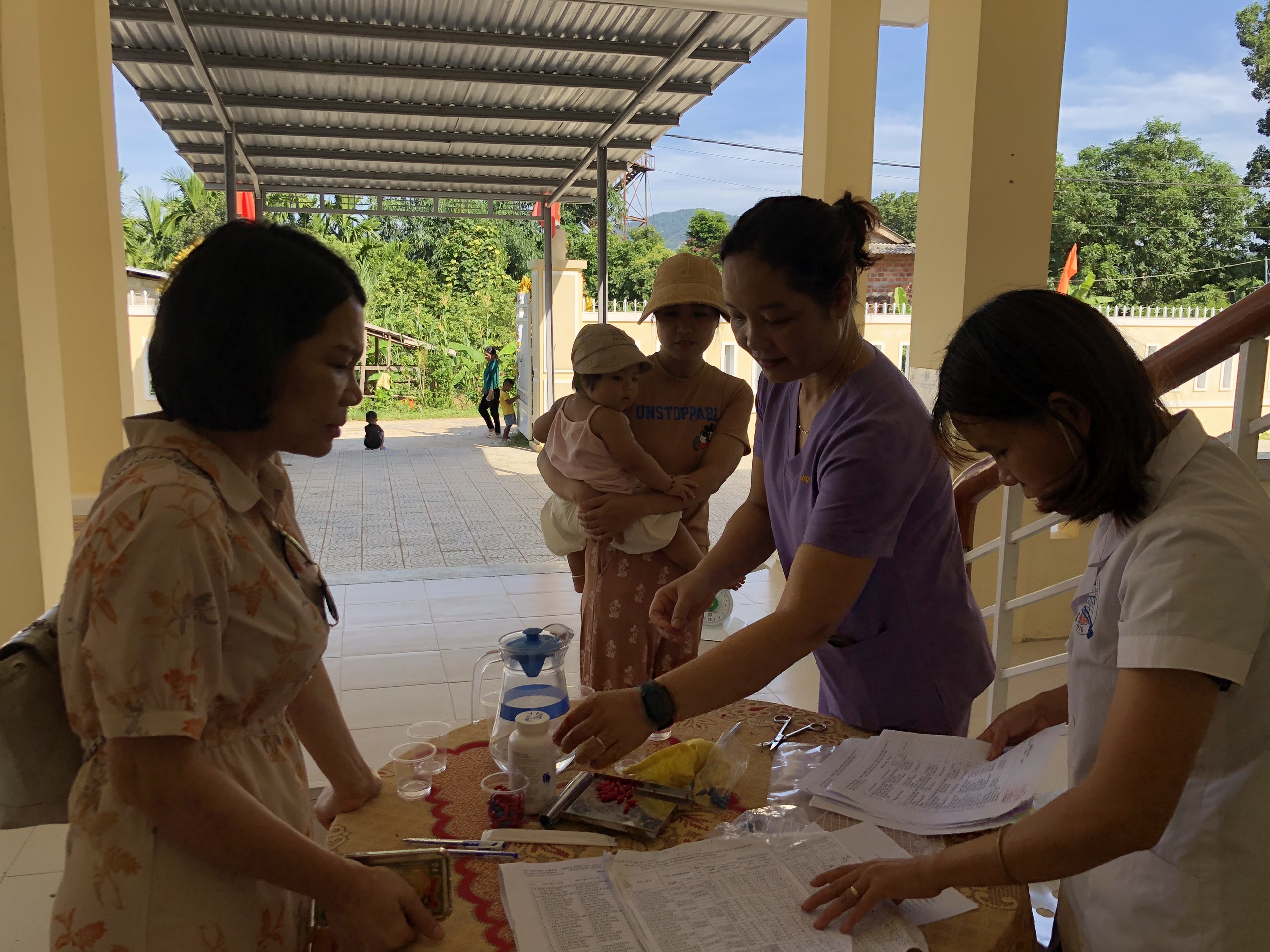 Trong những ngày đầu của chiến dịch, các phụ huynh/người chăm sóc trẻ đã đưa trẻ đến các điểm uống vitamin A kết hợp cân đo để trẻ được bổ sung Vitamin A liều cao theo đúng phác đồ của Bộ Y tế và để được đánh giá tình trạng dinh dưỡng.