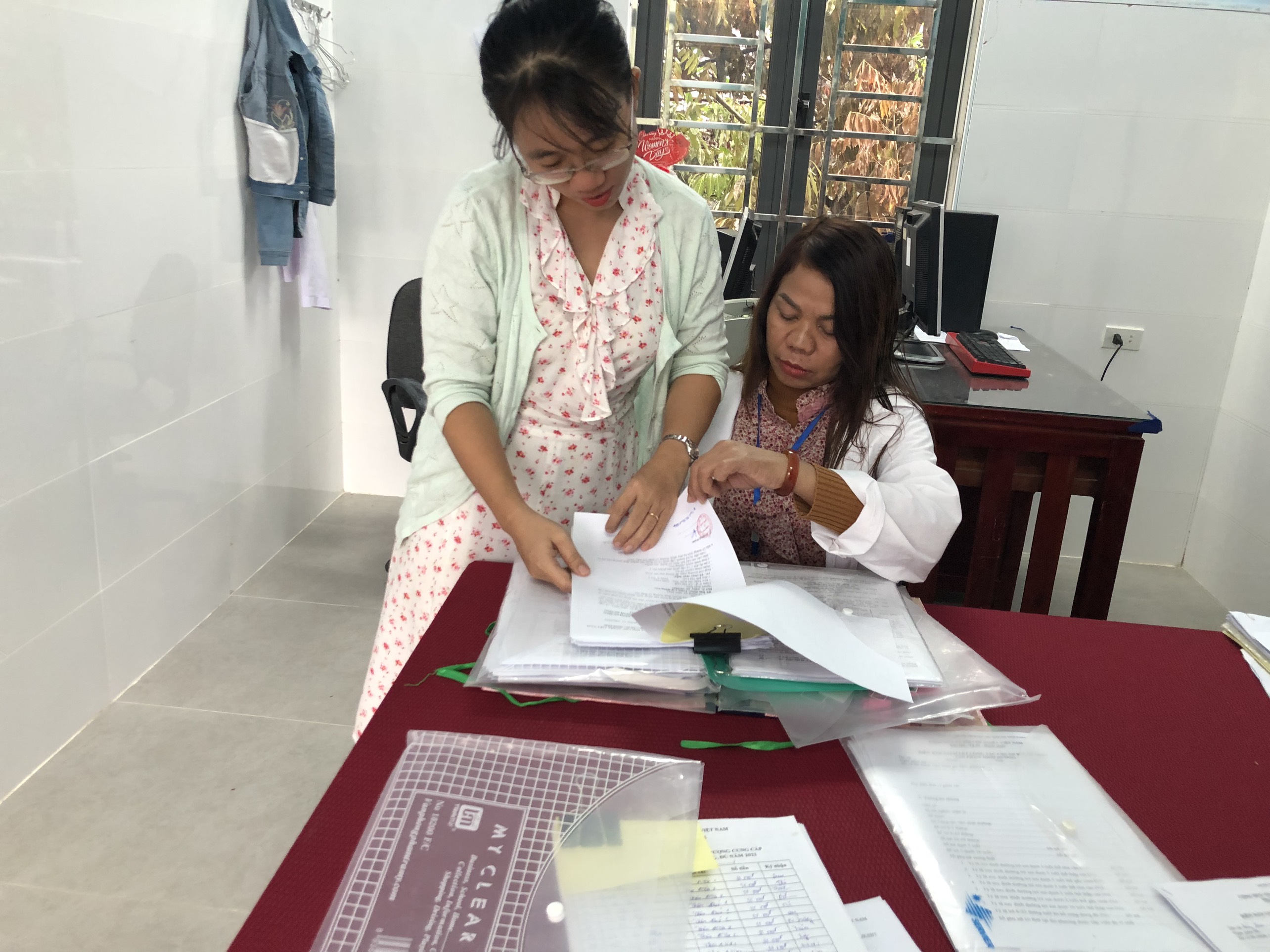 Trong đợt giám sát này Đoàn cũng đã kiểm tra hoạt động quản lý đối tượng suy dinh dưỡng tại trạm. Đặc biệt là danh sách trẻ bị suy dinh dưỡng dưới 5 tuổi. Trẻ bị suy dinh dưỡng được cân đo hàng tháng và kẻ biểu đồ tăng trưởng để đánh giá xu hướng tăng trưởng của trẻ. Từ đó đưa trẻ vào danh sách đối tượng cần được hỗ trợ sản phẩm dinh dưỡng và được cấp phát miễn phí khi có sản phẩm dinh dưỡng. Trong quá trình giám sát đoàn đã chỉ ra một số vấn đề còn tồn tại hay mắc sai lầm trong quá trình quản lý số liệu, cách xác định tháng tuổi của trẻ, kẻ biểu đồ, cũng như thực hiện việc thống kê báo cáo thông qua bộ công cụ hỗ trợ đánh giá tình trạng dinh dưỡng và hướng dẫn lại cho trạm nắm bắt được các nội dung trước trong và sau khi tiến hành cấp phát sản phẩm dinh dưỡng.