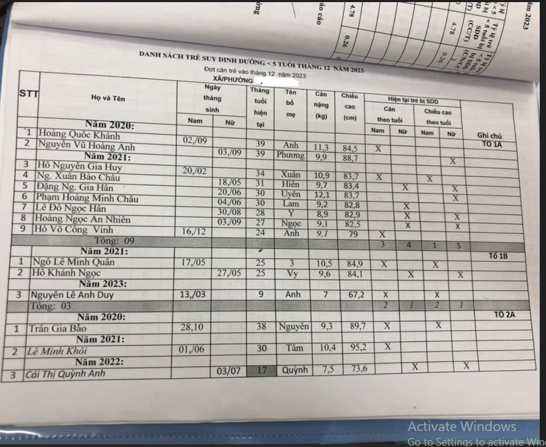 Danh sách trẻ bị suy dinh dưỡng được TYT quản lý