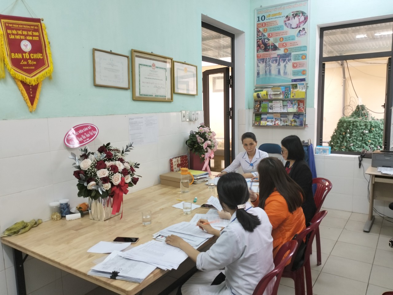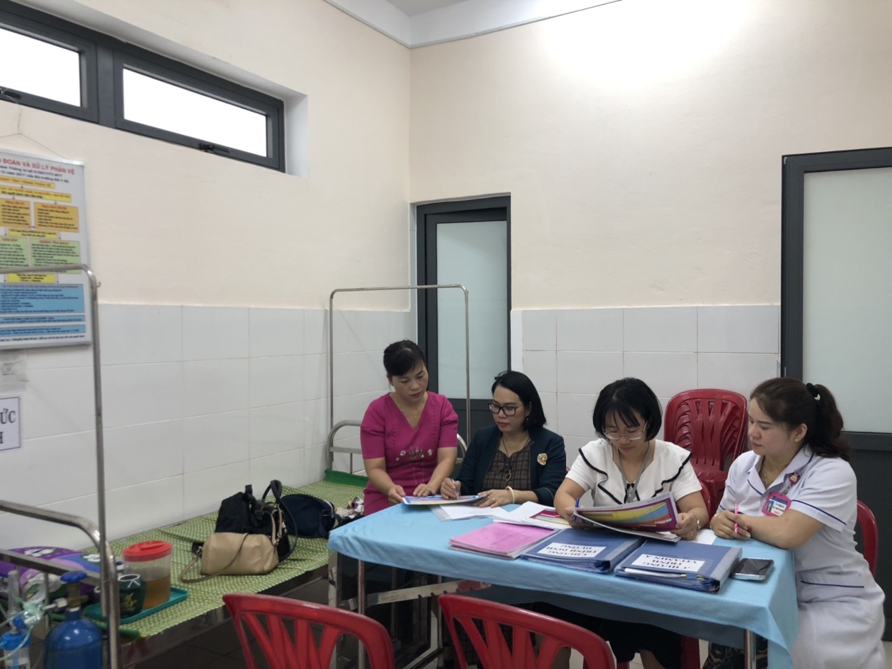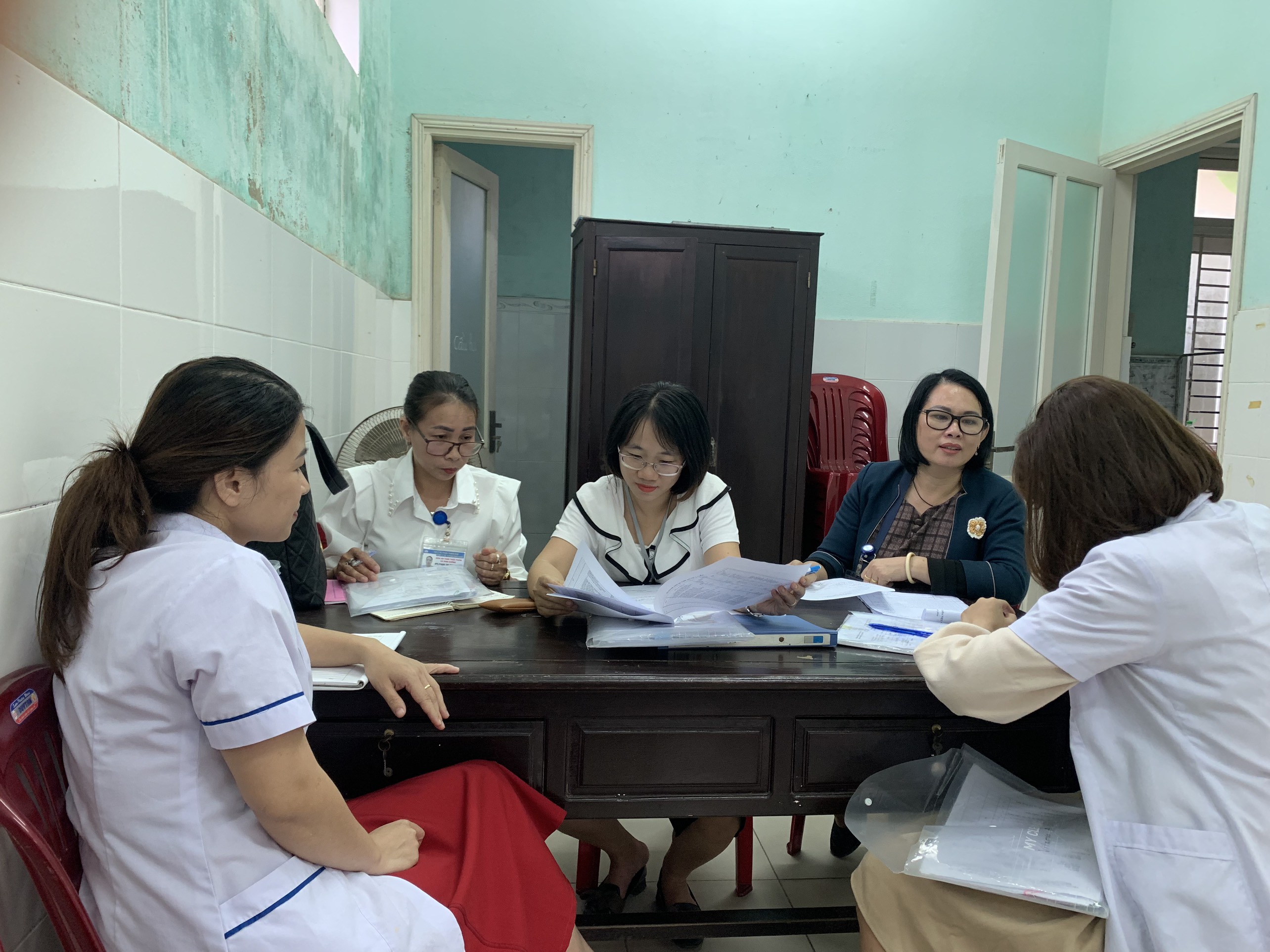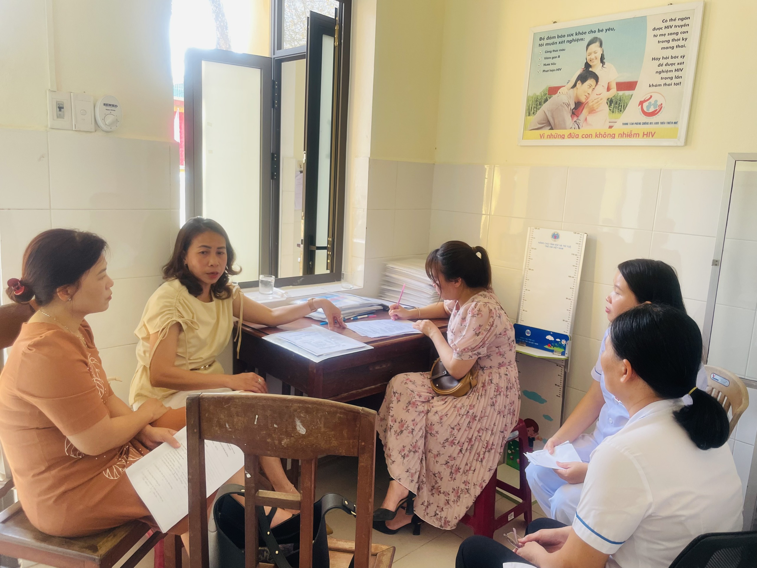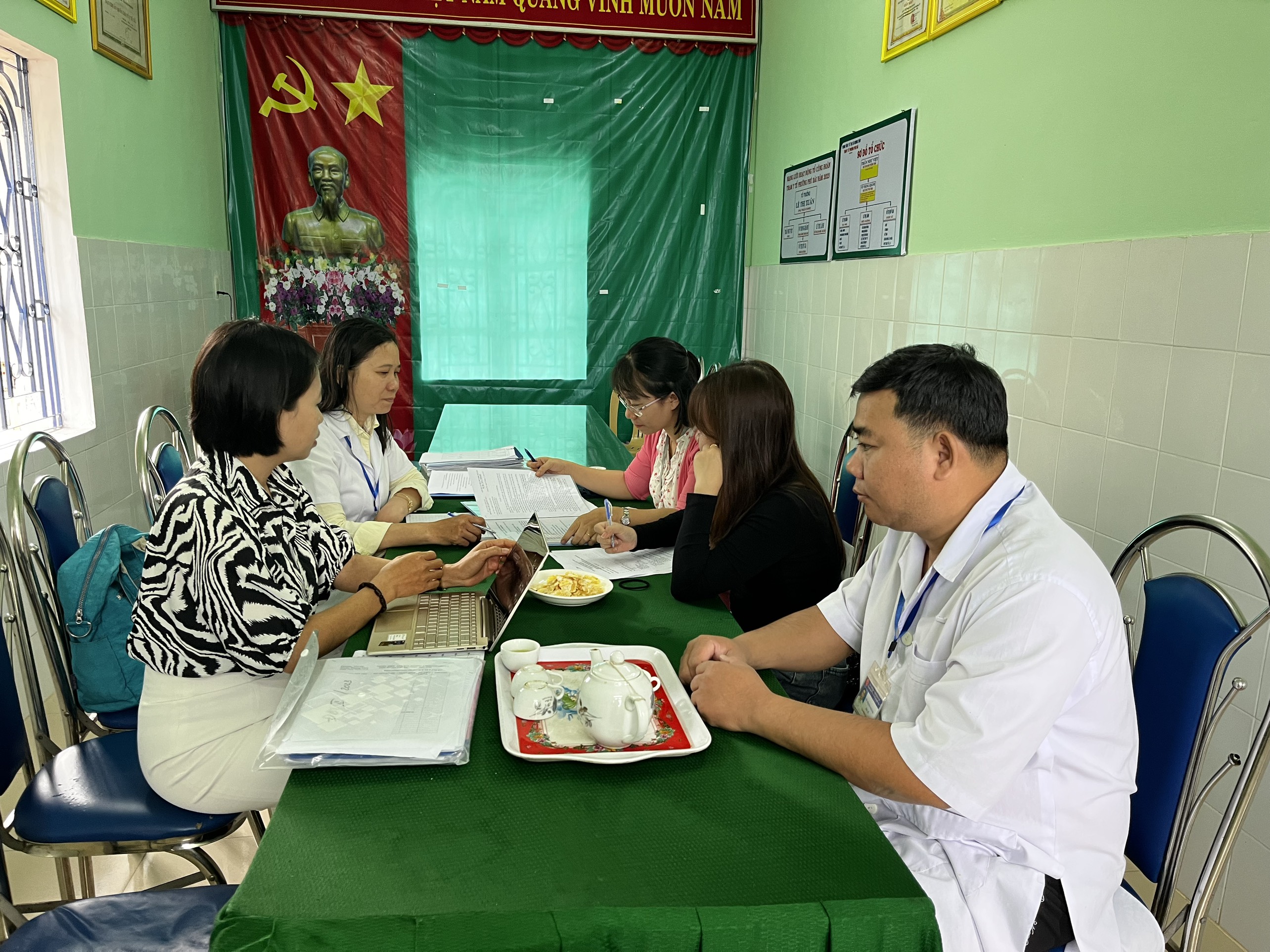 Đoàn làm việc với TYT về chương trình DD và Vitamin A