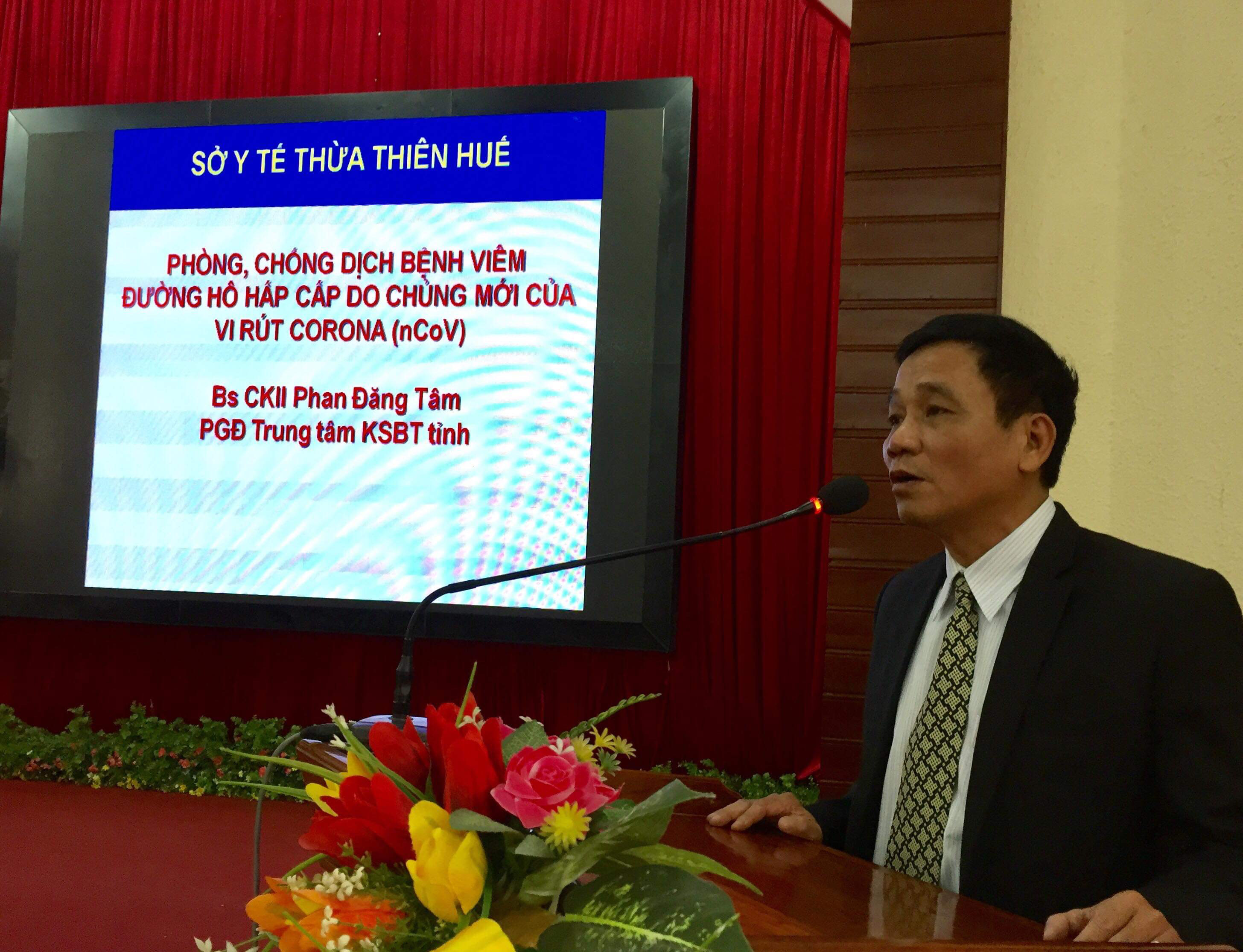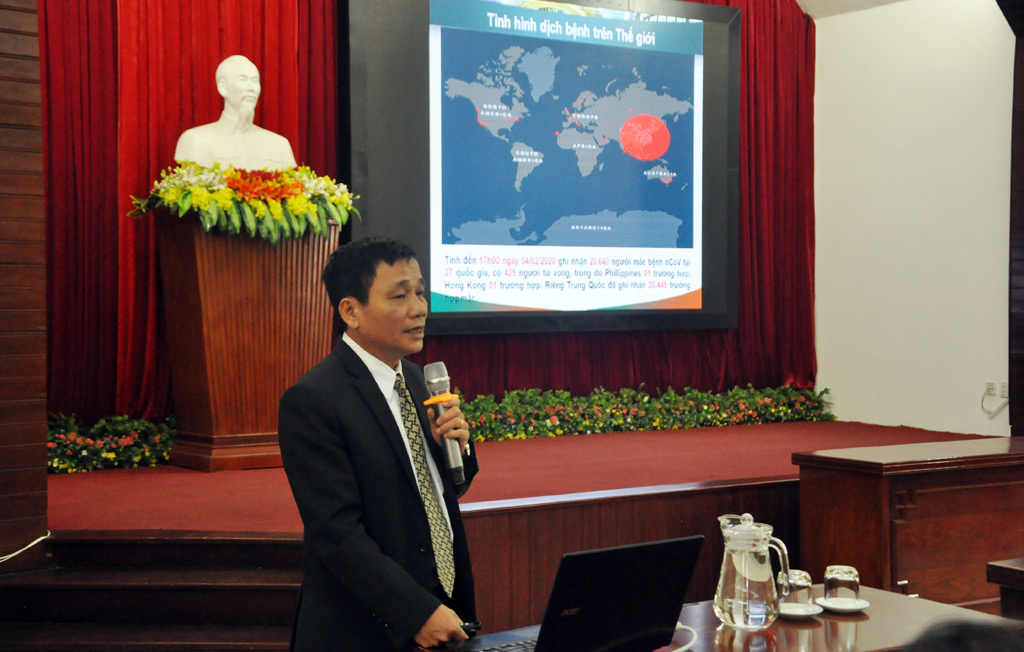 ThS.Bác sĩ Phan Đăng Tâm, Phó Giám đốc Trung tâm Kiểm soát bệnh tật tỉnh Thừa Thiên Huế, báo cáo chuyên đề các tình huống phòng, chống dịch bệnh viêm đường hô hấp cấp do chủng mới virus Corona