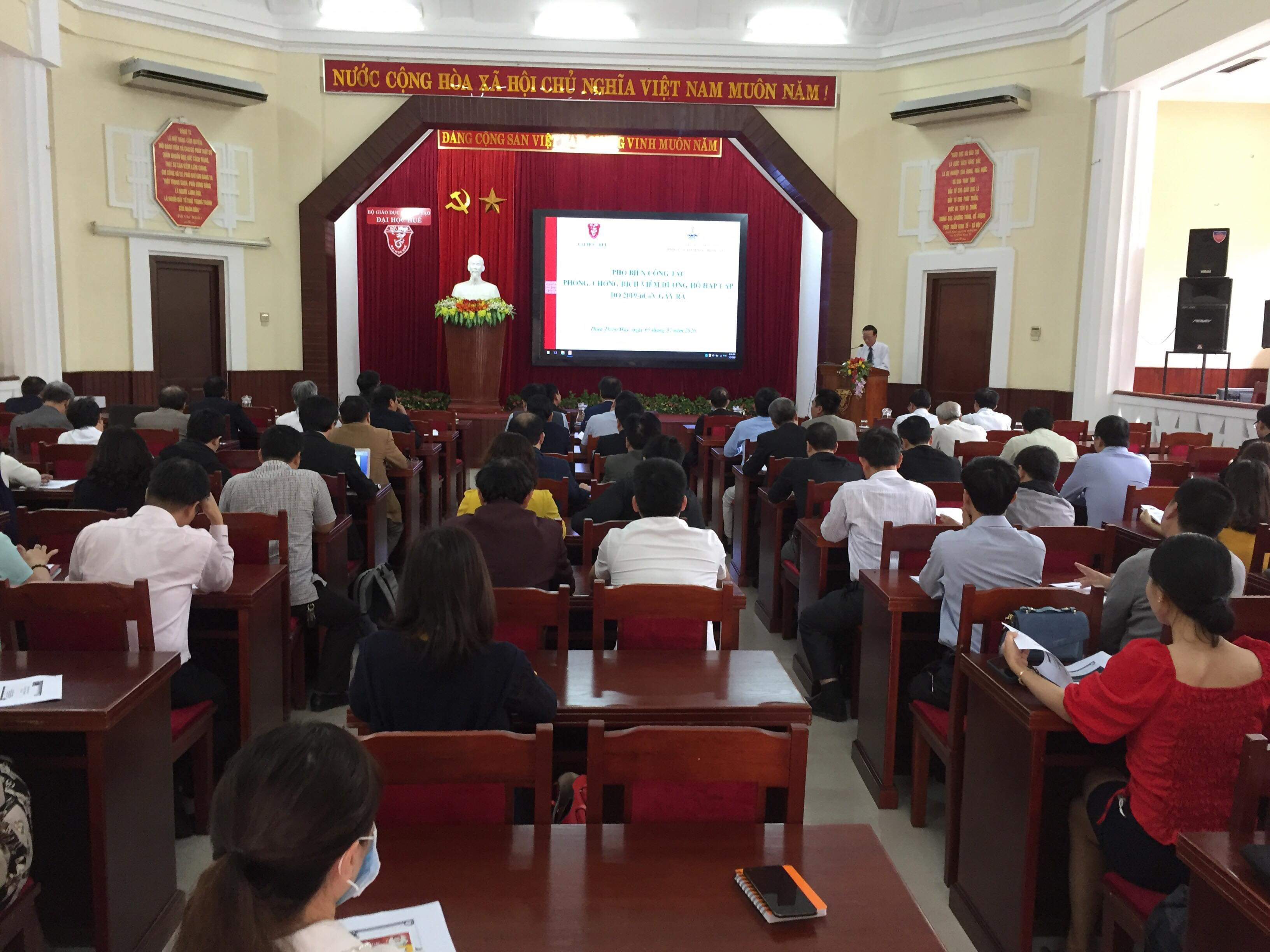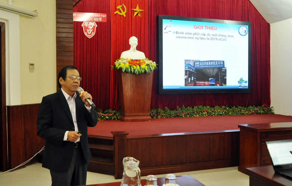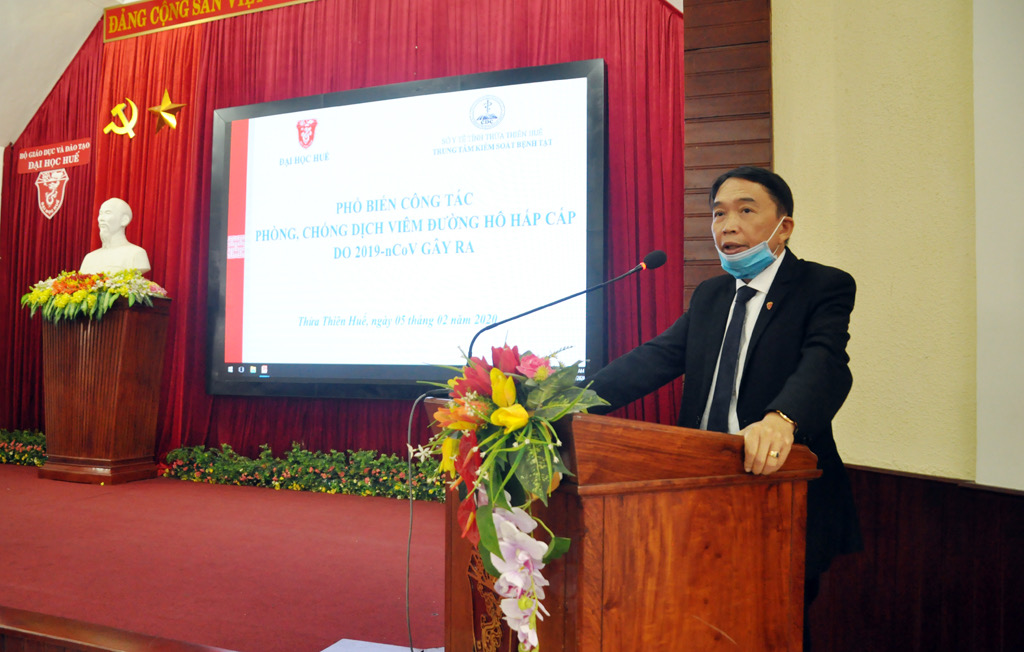 Thực hiện chỉ đạo của lãnh đạo Sở Y tế, Trung tâm Kiểm soát bệnh tật tỉnh Thừa Thiên Huế phối hợp với Đại học Huế và Trường Đại học Y Dược, Đại học Huế tổ chức phổ biến công tác phòng chống dịch viêm đường hô hấp cấp do chủng mới virus Corona gây ra. Tham dự có PGS.TS. Nguyễn Quang Linh, Bí thư Đảng ủy, Giám đốc Đại học Huế; ThS.Bác sĩ Phan Đăng Tâm, Phó Giám đốc Trung tâm Kiểm soát bệnh tật tỉnh Thừa Thiên Huế; lãnh đạo Văn phòng, các Ban chức năng, trường đại học thành viên, đơn vị trực thuộc và cán bộ y tế trong toàn Đại học Huế.