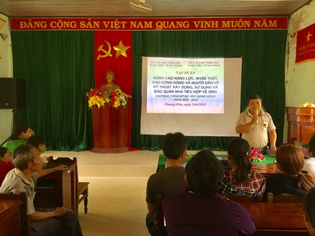 ThS. Trần Bá Thanh – Trưởng khoa Sức khỏe môi trường – Y tế trường học, Trung tâm Kiểm soát bệnh tật tỉnh Thừa Thiên Huế, trình bày các nội dung: Giới thiệu các mô hình nhà tiêu hợp vệ sinh theo quy định của Bộ y tế bao gồm: Nhà tiêu tự hoại, thấm dội nước, hai ngăn sinh thái, chìm có ống thông hơi. Nhân rộng mô hình nhà tiêu hợp vệ sinh trong cộng đồng; Tập huấn kỹ thuật xây dựng, sử dụng và bảo quản các loại nhà tiêu hợp vệ sinh hộ gia đình; Nâng cao nhận thức cho người dân tham gia xây dựng, cải tạo nhà tiêu hợp vệ sinh hộ gia đình, làm giảm tỷ lệ mắc các bệnh lây truyền qua đường tiêu hóa tại các xã triển khai dự án, góp phần nâng cao sức khỏe nhân dân.