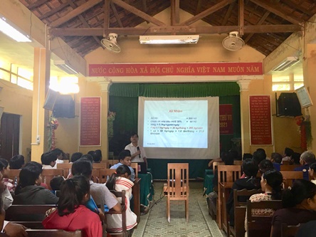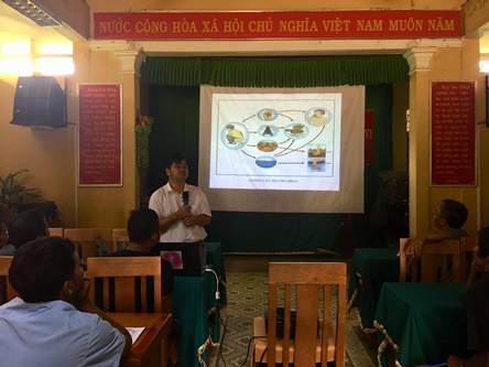 Ths Trần Bá Thanh – Trưởng khoa Sức khỏe môi trường – Y tế trường học trình bày các nội dung tập huấn tại xã Nhâm