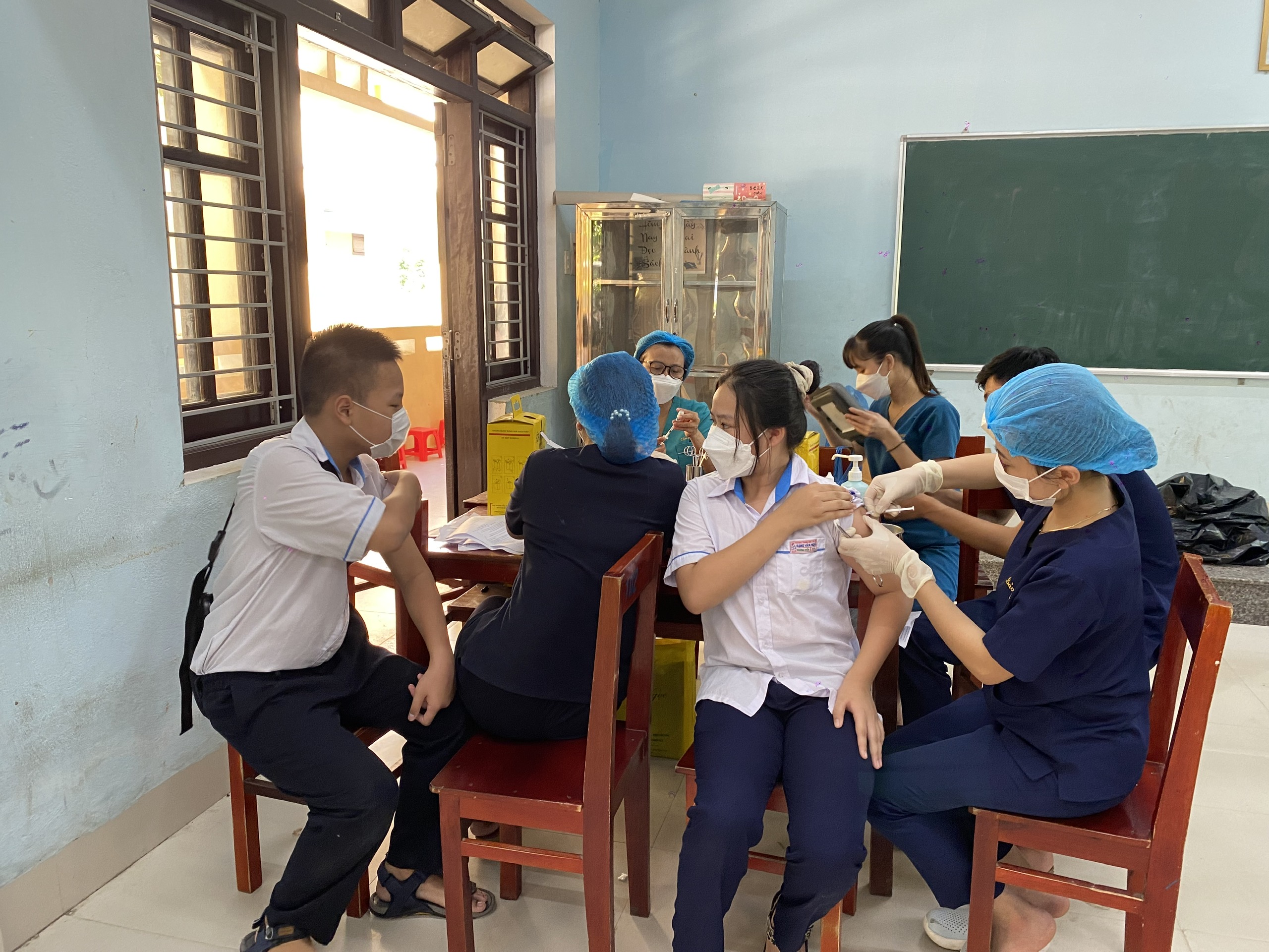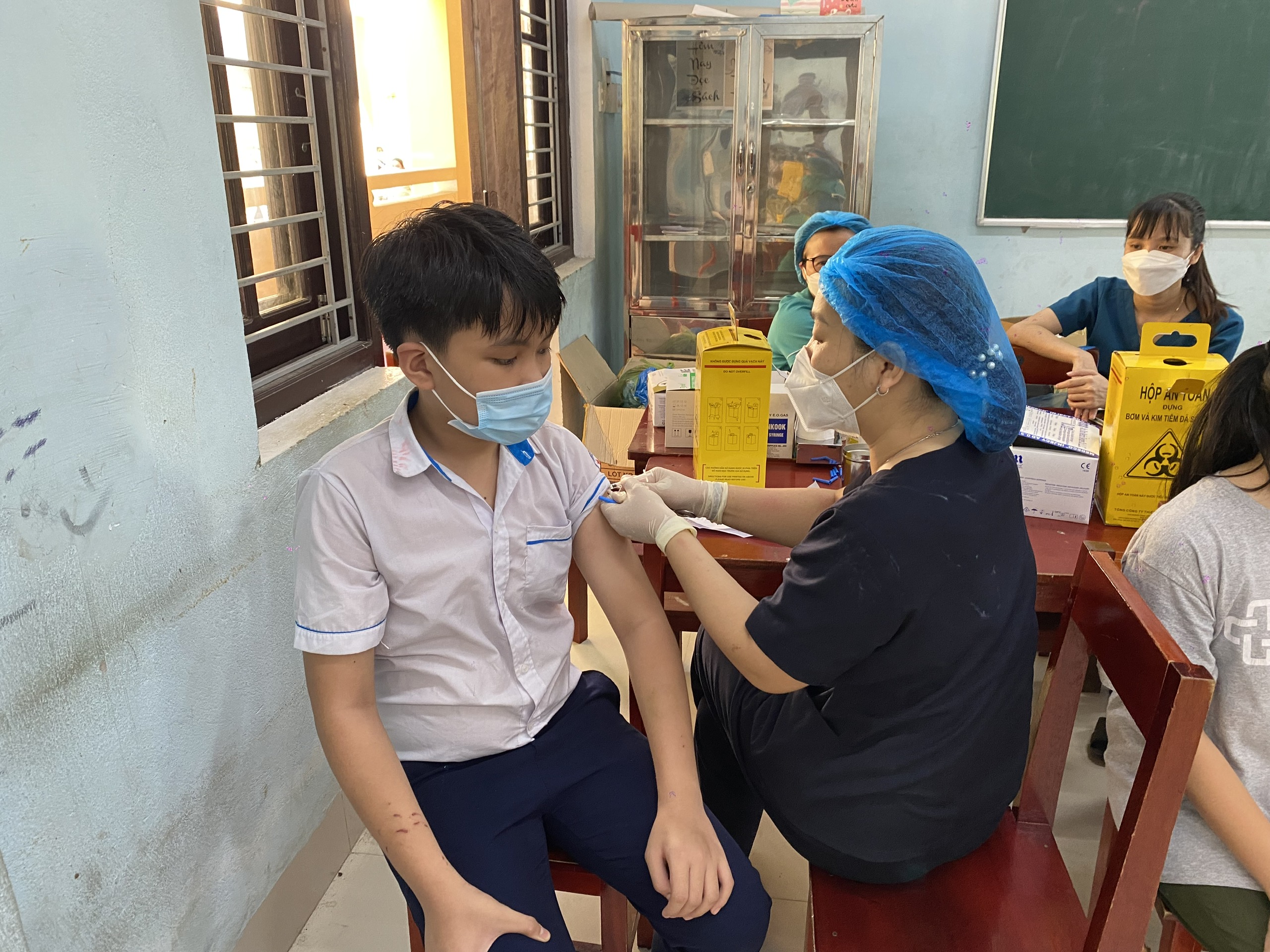 Kết quả tiêm chủng tại trường THCS Phạm Văn Đồng có 896 em đã tiêm đủ 2 liều cơ bản nhưng liều nhắc lại chỉ có 294 em đến tiêm. Trường THCS Đặng Văn Ngữ có 894 em đã tiêm đủ 2 liều cơ bản nhưng cũng chỉ có 311 em đến tiêm liều nhắc lại. Mặc đù nhà trường đã tuyên truyền động viên phụ huynh cho con em mình đến tiêm nhưng tỷ lệ đến tiêm còn thấp.
