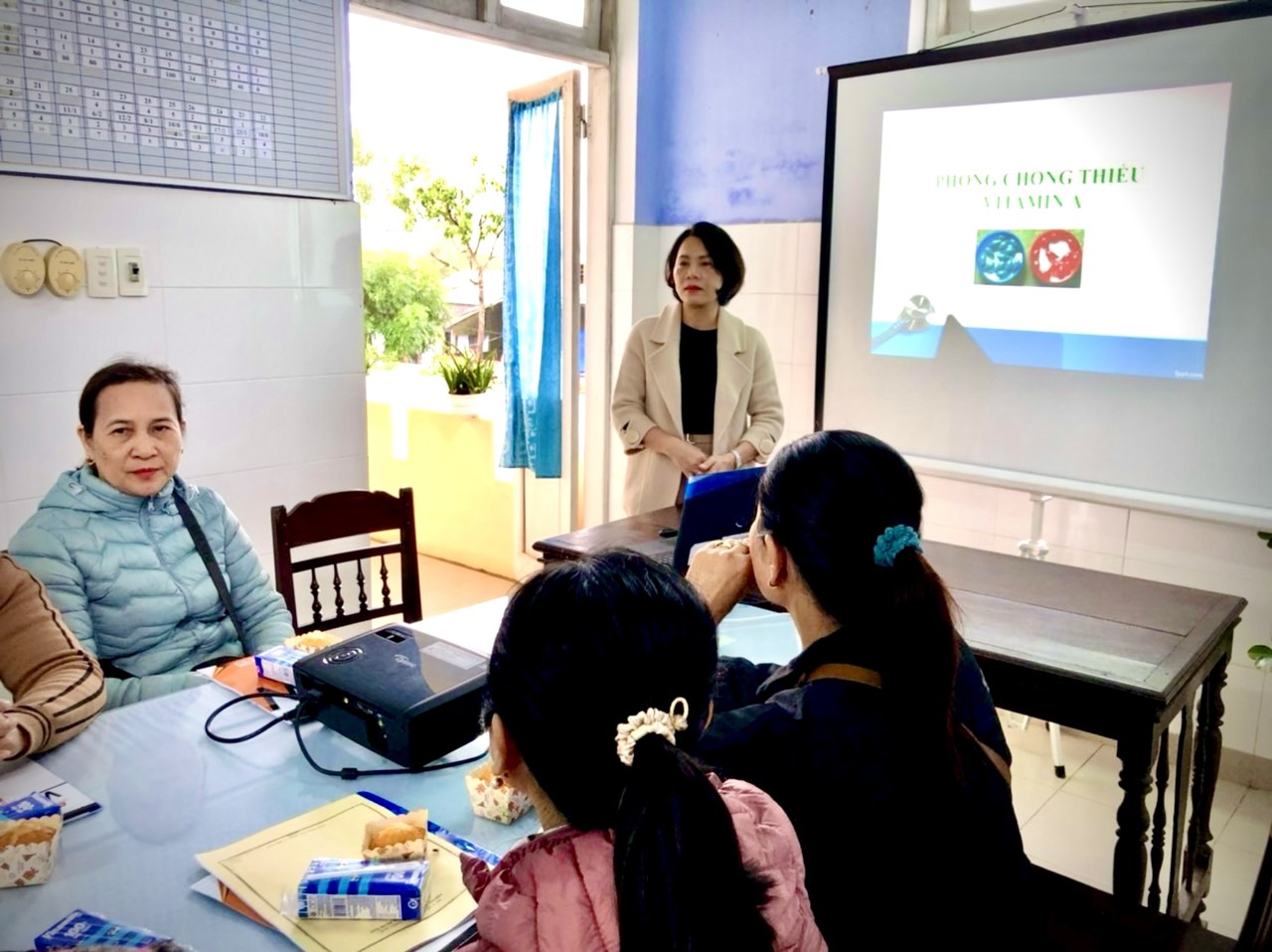 Cộng tác viên dinh dưỡng là đội ngũ hỗ trợ cán bộ trạm y tế rất nhiều trong các hoạt động phòng chống suy dinh dưỡng nói riêng và hoạt động y tế nói chung, do đó nâng cao năng lực cho đội ngũ này sẽ là một trong nhưng hoạt động mang lại nhiều hiệu quả thiết thực trong công tác phòng chống suy dinh dưỡng trên địa bàn. Tại lớp tập huấn BS CKI Lê Thị Sông Hương, phó khoa PCBKLN-DD và các cán bộ của khoa đã trình bày các nội dung như: Vai trò của vi chất dinh dưỡng, tầm quan trọng của Vitamin A, quy trình và kỹ thuật cho trẻ uống Vitamin A. Nhắc lại quy trình và kỹ thuật cân đo trẻ. Tại buổi tập huấn các giảng viên đã đưa ra những hình ảnh thực tế để cùng cộng tác viên phân tích những điểm sai thường hay mắc phải từ đó rút kinh nghiệm để đạt kết quả tốt hơn trong những lần sau.