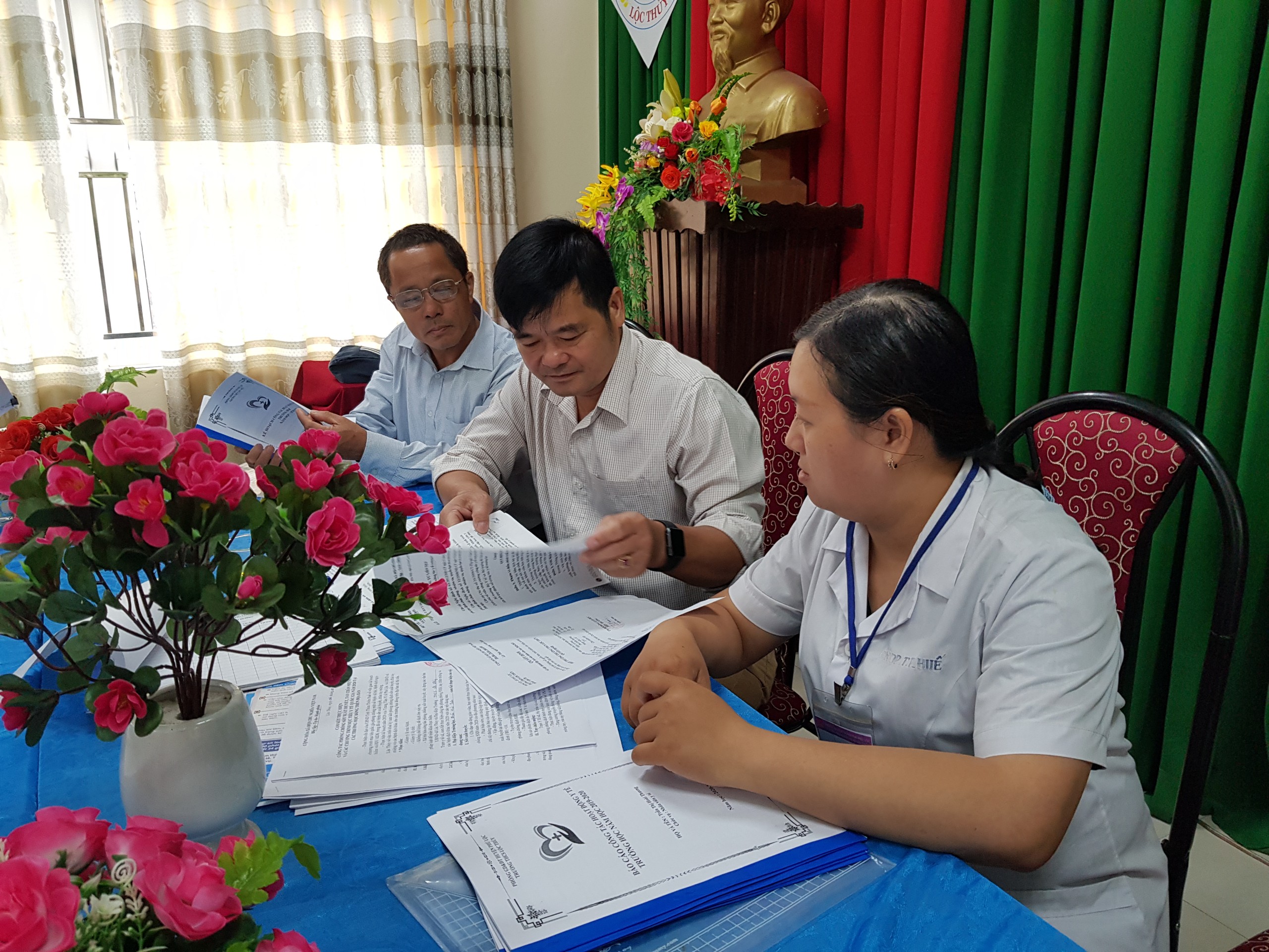 Trung tâp KSBT tỉnh kiểm tra công tác Y tế trường học và công tác phòng, chống dịch bệnh trong trường học tại huyện Phú Lộc