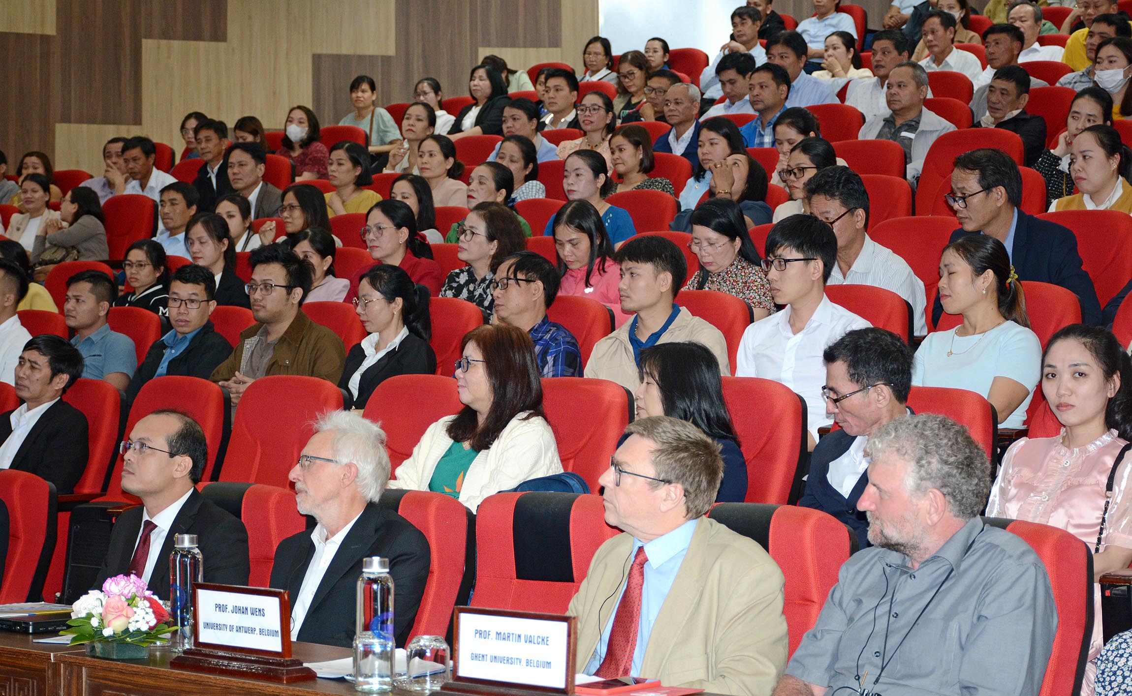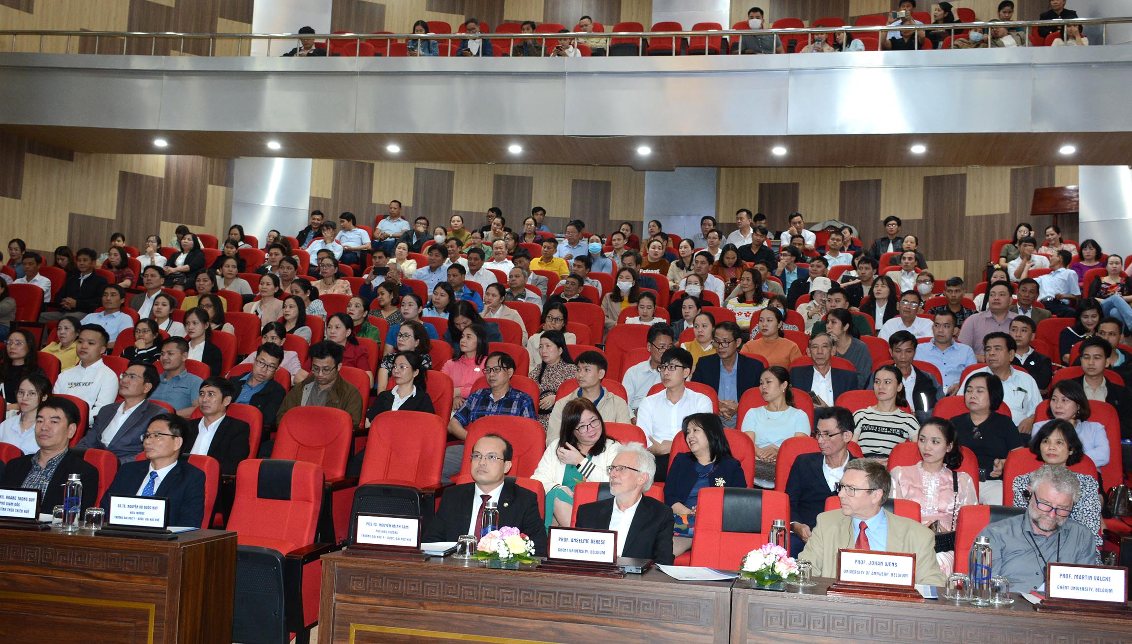 GS.TS Nguyễn Vũ Quốc Huy - Hiệu trưởng Trường ĐH Y - Dược, Đại học Huế ghi nhận những đóng góp, tặng hoa và quà lưu niệm cho các GS Trường Đại học Ghent, Đại học Antwerp - Vương quốc Bỉ.