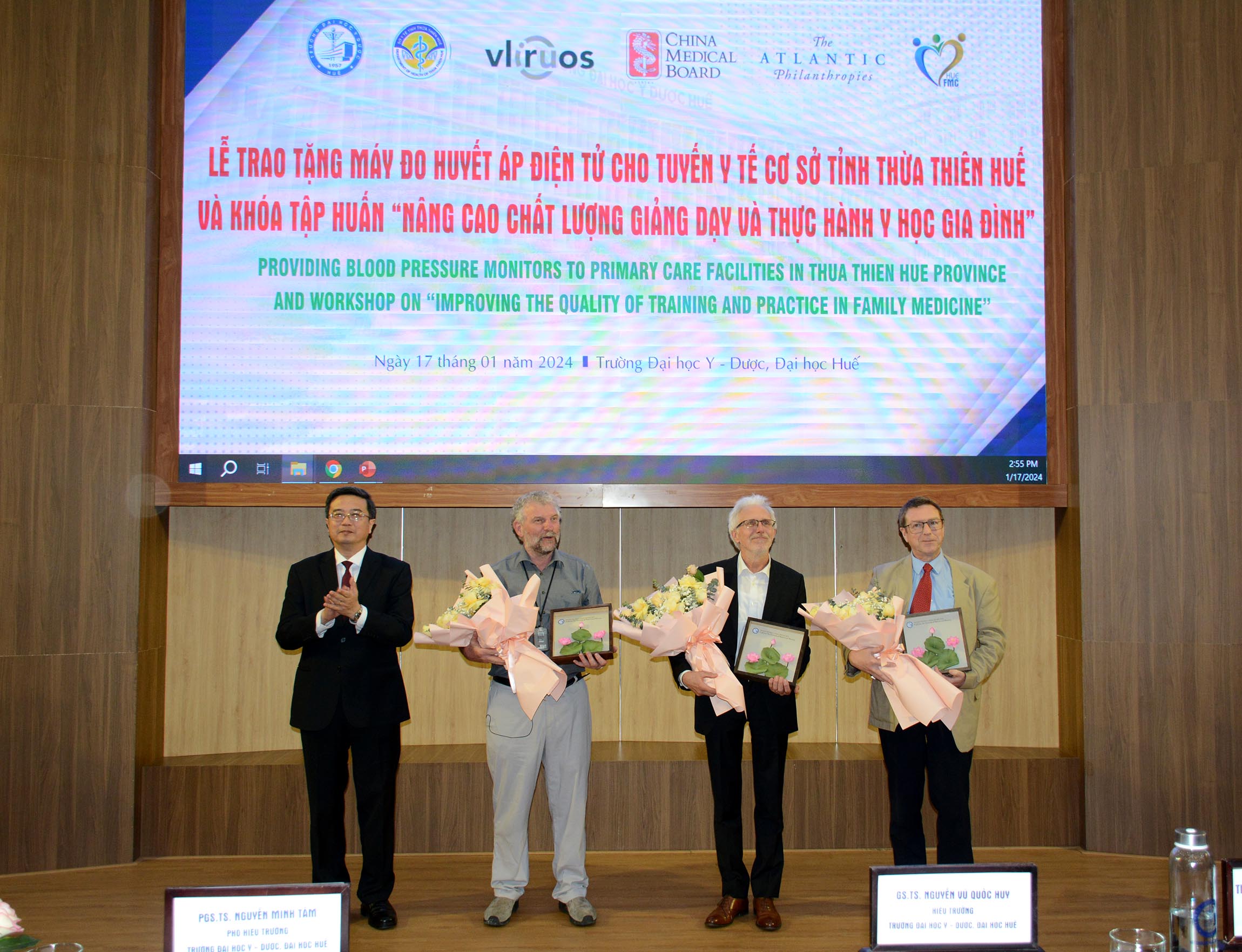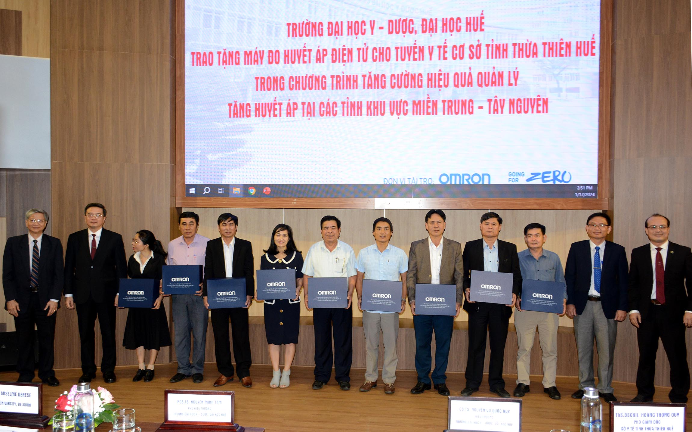 Được sự hỗ trợ của các nhà tài trợ, Trường ĐH Y Dược - Đại học Huế đã trao tặng 160 máy đo HA điện tử OMRON cho 9 TTYT huyện/thị xã/thành phố, 141 trạm Y tế xã/phường/thị trấn trên địa bàn toàn tỉnh và Trung tâm Kiểm soát bệnh tật tỉnh. Sau lễ trao tặng máy đo HA, Trường Đại học Y - Dược, Đại học Huế tổ chức tập huấn về: Đào tạo nâng cao năng lực và thực hành CSSK ban đầu cho tuyến y tế cơ sở…