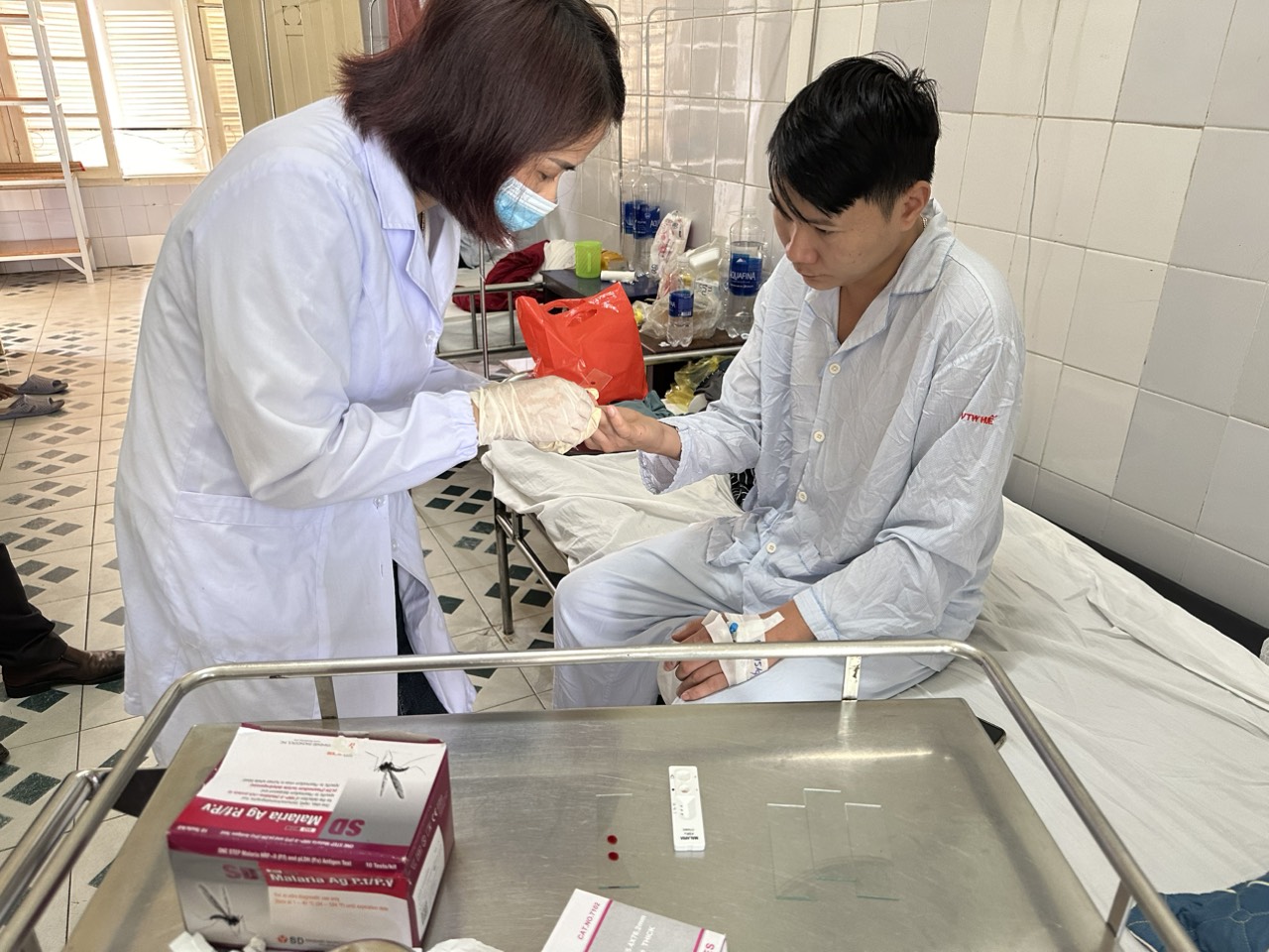 Ngày 16/4/2024, Trung tâm Kiểm soát bệnh tật tỉnh phối hợp làm test chẩn đoán nhanh và lấy máu soi lam, kết quả: test chẩn đoán nhanh dương tính (+) với Plasmodium falciparum, soi lam mật độ KSTSR (++). Bệnh nhân được điều trị thuốc sốt rét theo đúng phác đồ điều trị của Bộ Y tế và theo dõi những ngày tiếp theo.