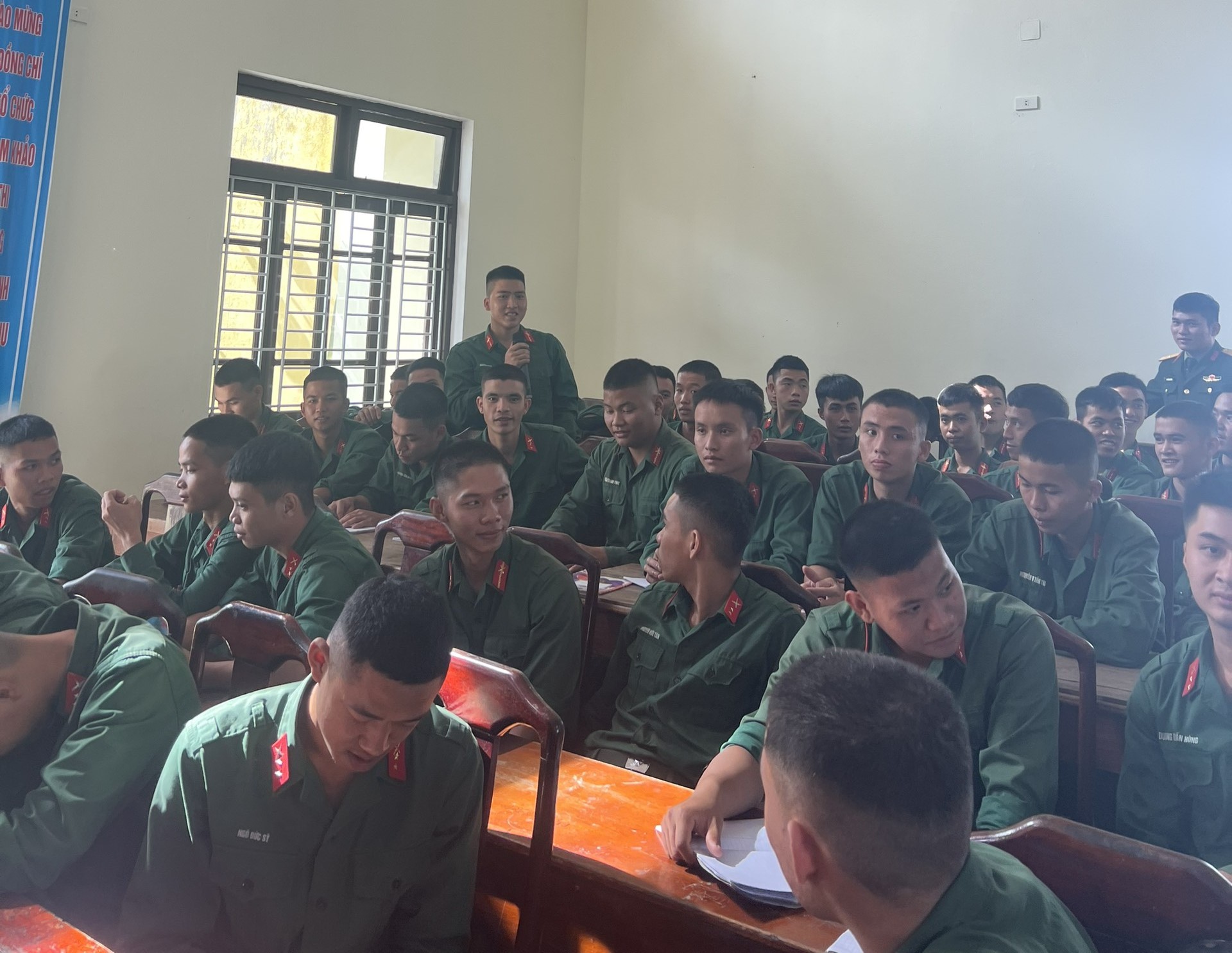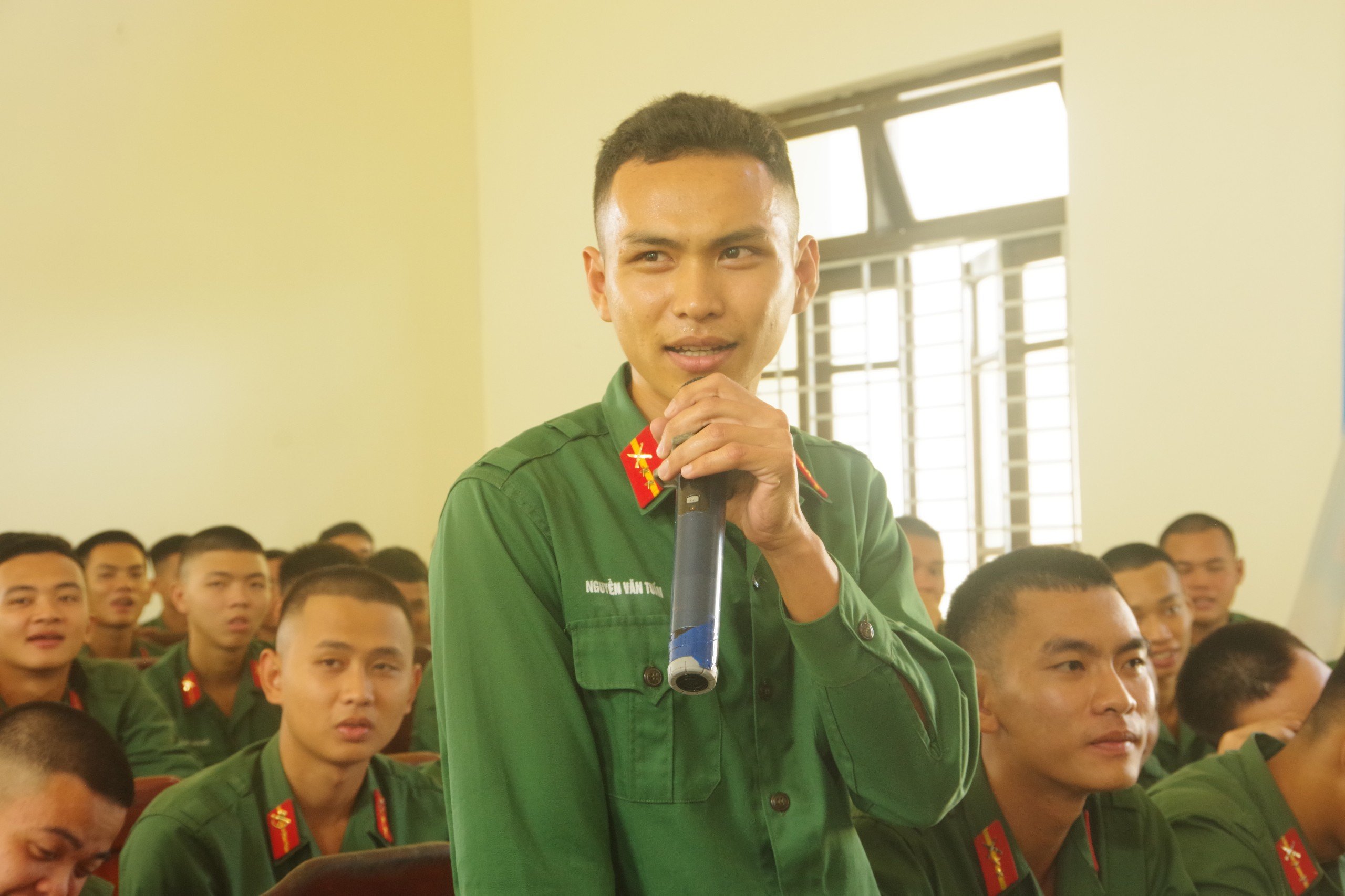 Các chiến sĩ vui tươi, hào hứng tham gia phần hỏi đáp kèm quà tặng.