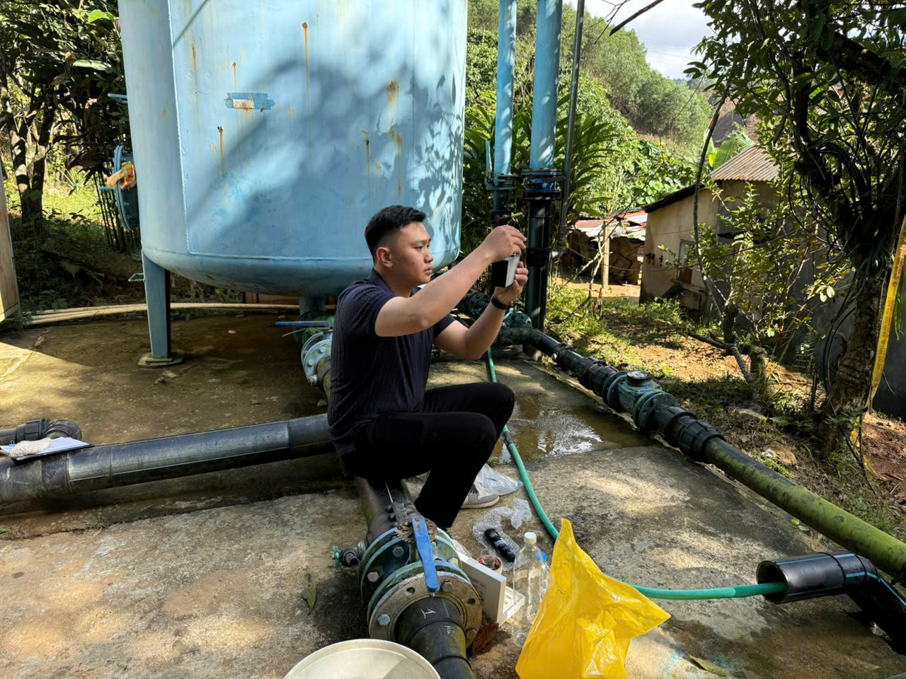 Cán bộ công ty TSL đo clo dư tại hiện trường
