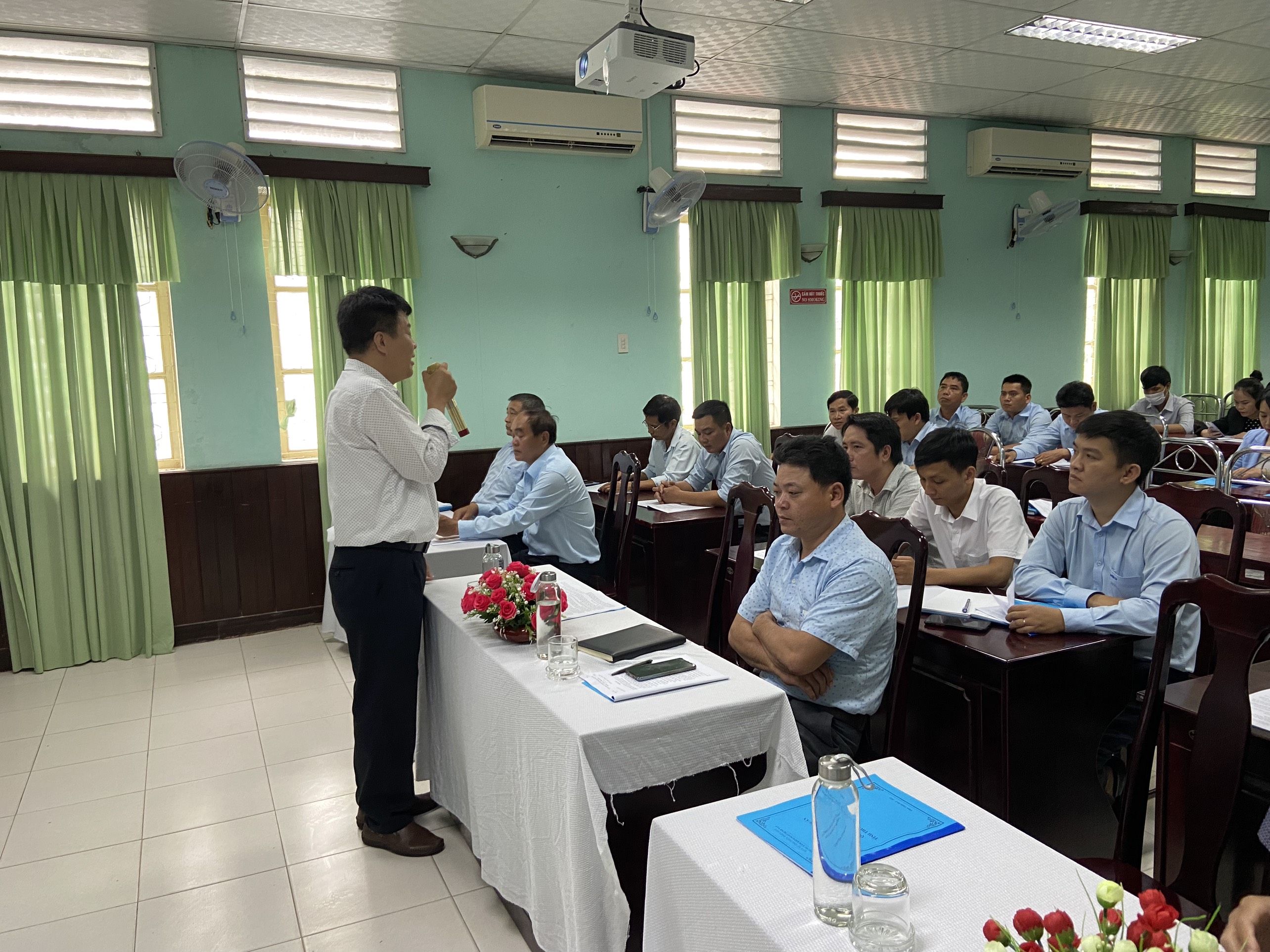 Kết thúc buổi tập huấn, Bs. Hồ Xuân Vũ - Phó Giám đốc Trung tâm Kiểm soát bệnh tật tỉnh đề nghị các đơn vị cấp nước thực hiện công tác giám sát chất lượng nước sạch theo quy định tại Quy chuẩn kỹ thuật địa phương và Thông tư 41/2018/TT-BYT. Đề nghị đơn vị cấp nước có phương án phối hợp quản lý chất lượng tại các bể chứa nước tập trung tại khách sạn, chung cư, bệnh viện, trường học trên địa bàn tỉnh, đảm bảo nước sạch cho người dân sử dụng..