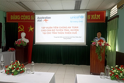 Bsáo cáo viên - CDC tỉnh phổ biến nội dung tập huấn An toàn tiêm chủng