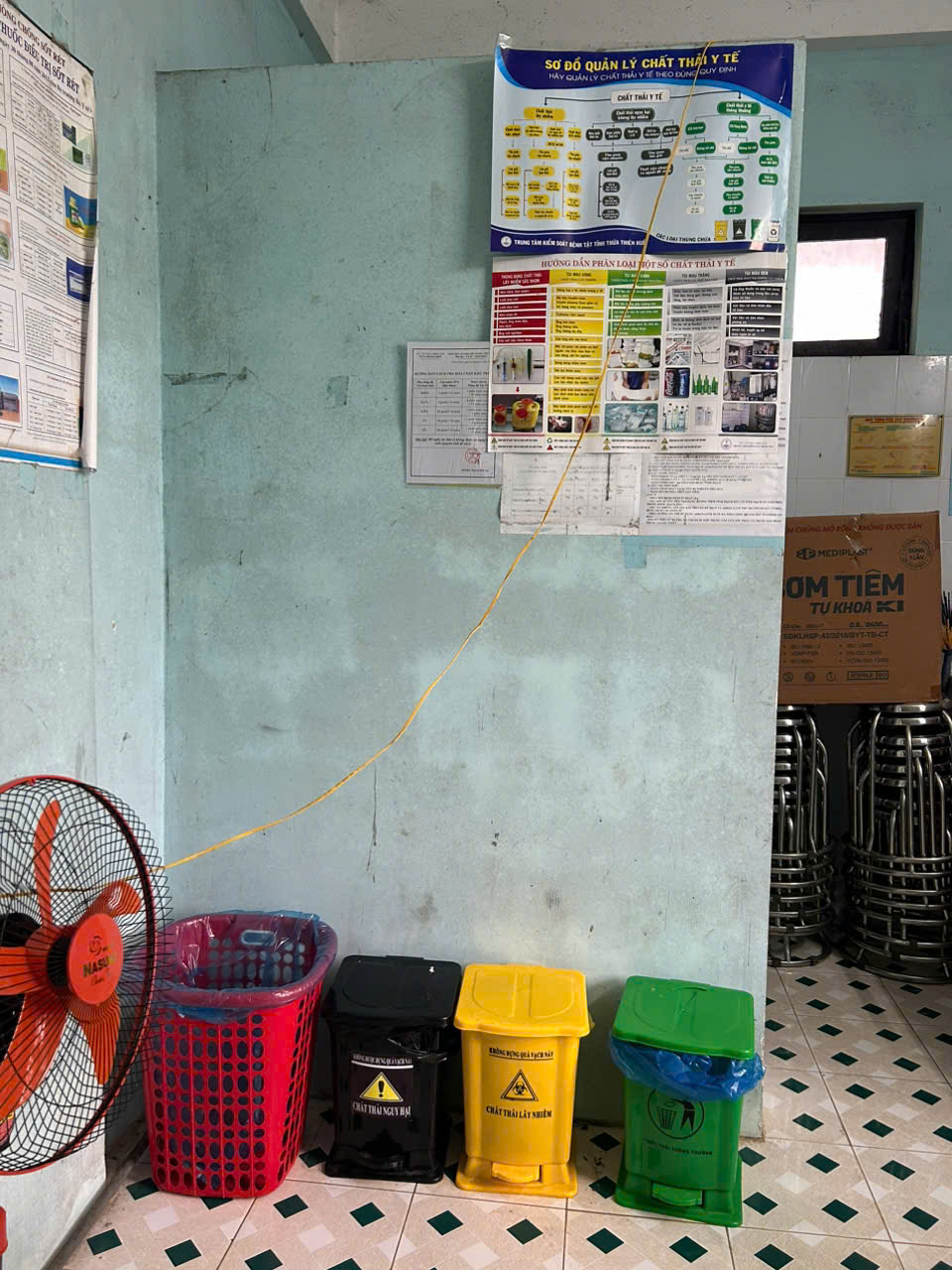 Thùng chứa các loại chất thải y tế.