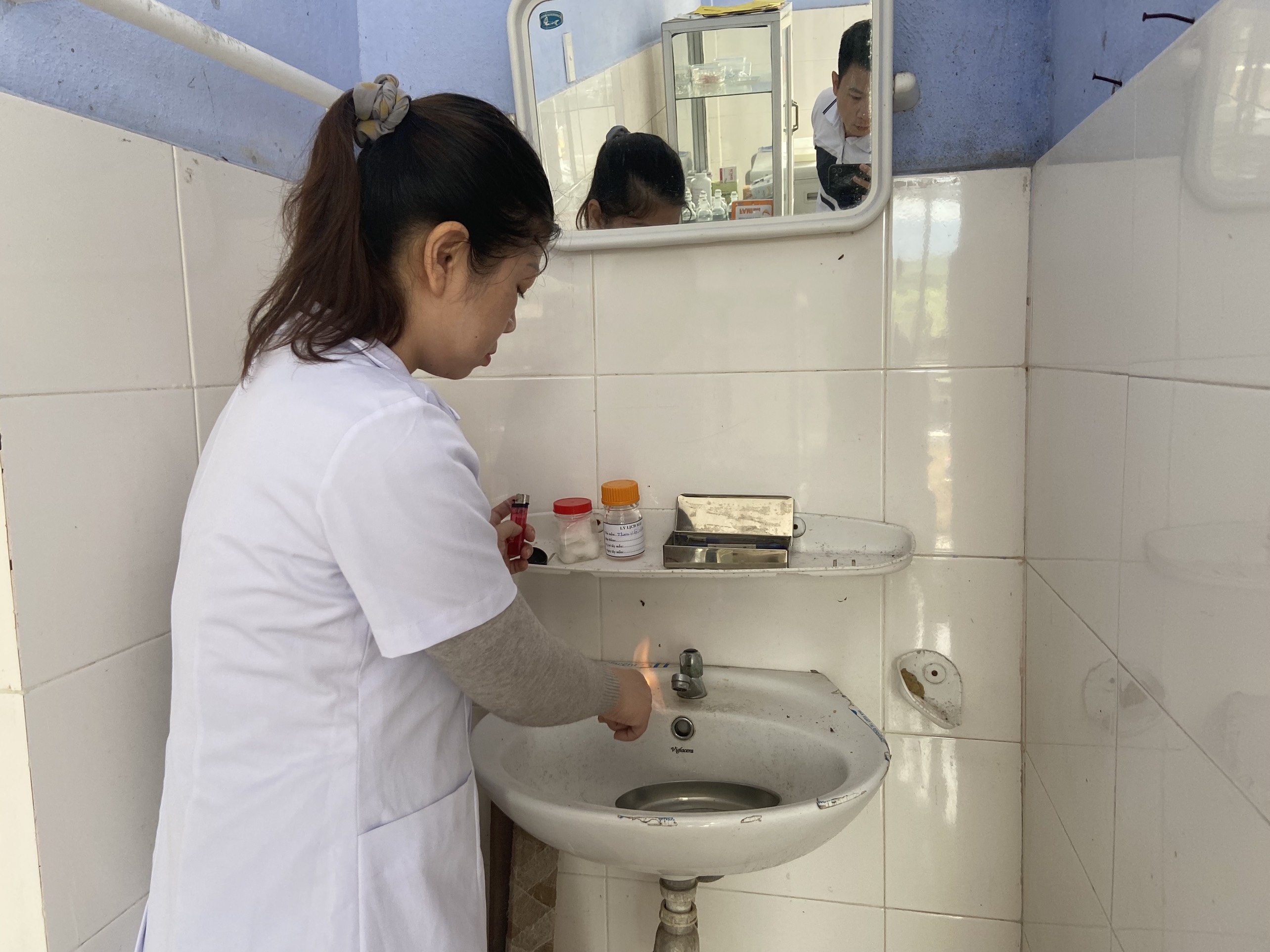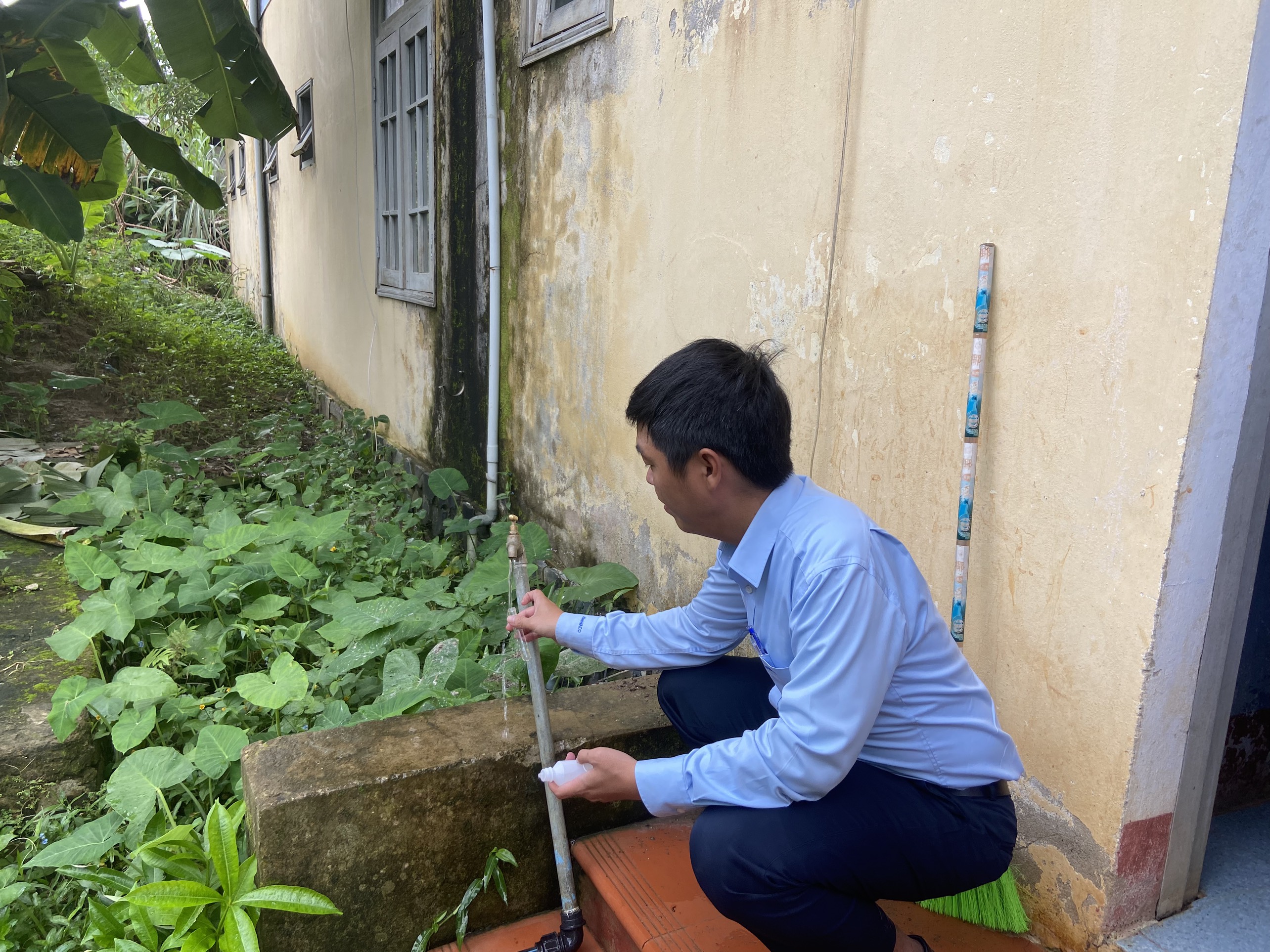 Cán bộ HueWACO lấy mẫu tại Trạm Y tế xã Hồng Thủy, huyện A Lưới