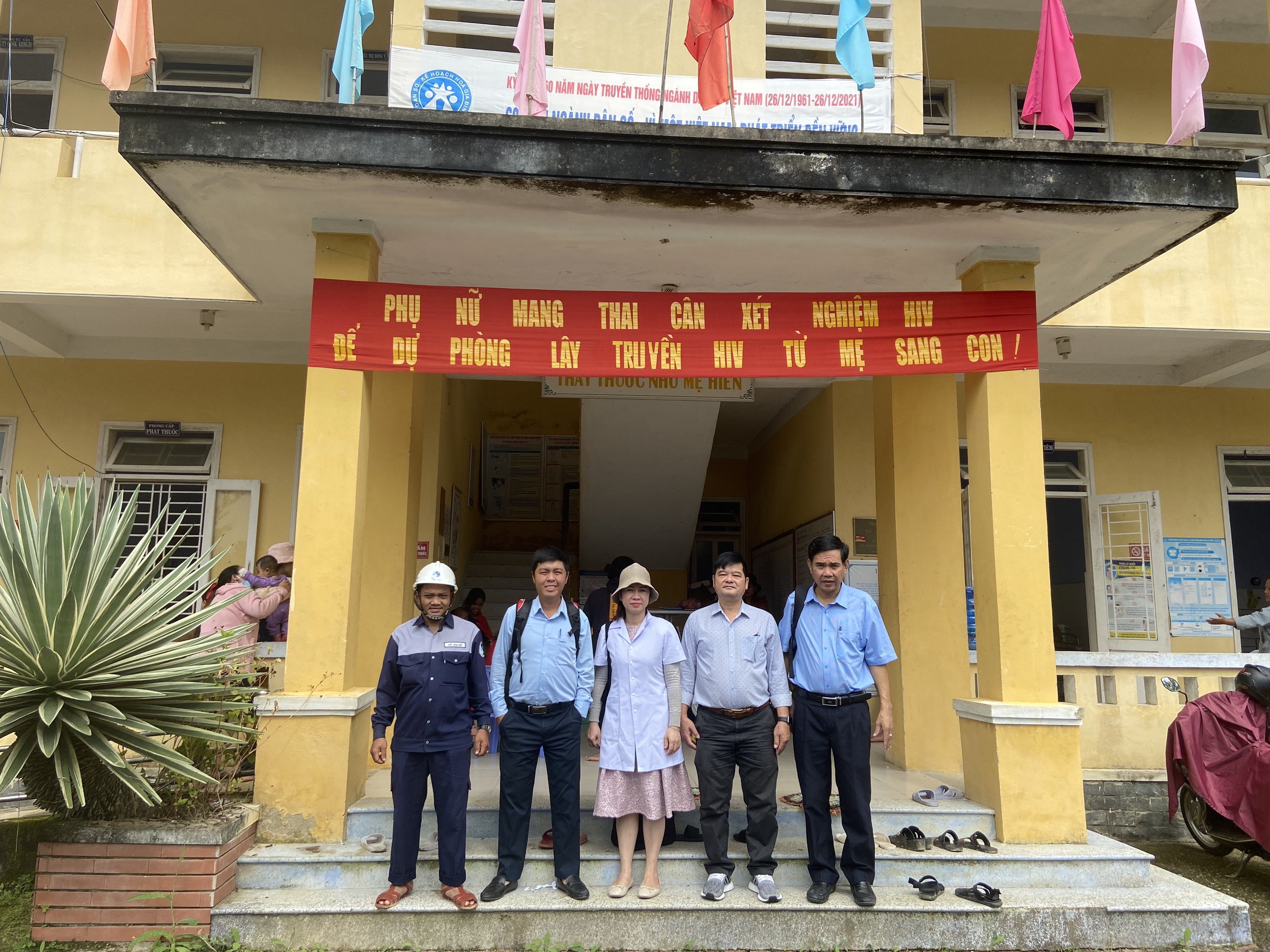 Cán bộ Khoa Xét nghiệm và cán bộ HueWACO lấy mẫu tại Trạm Y tế xã A Roàng