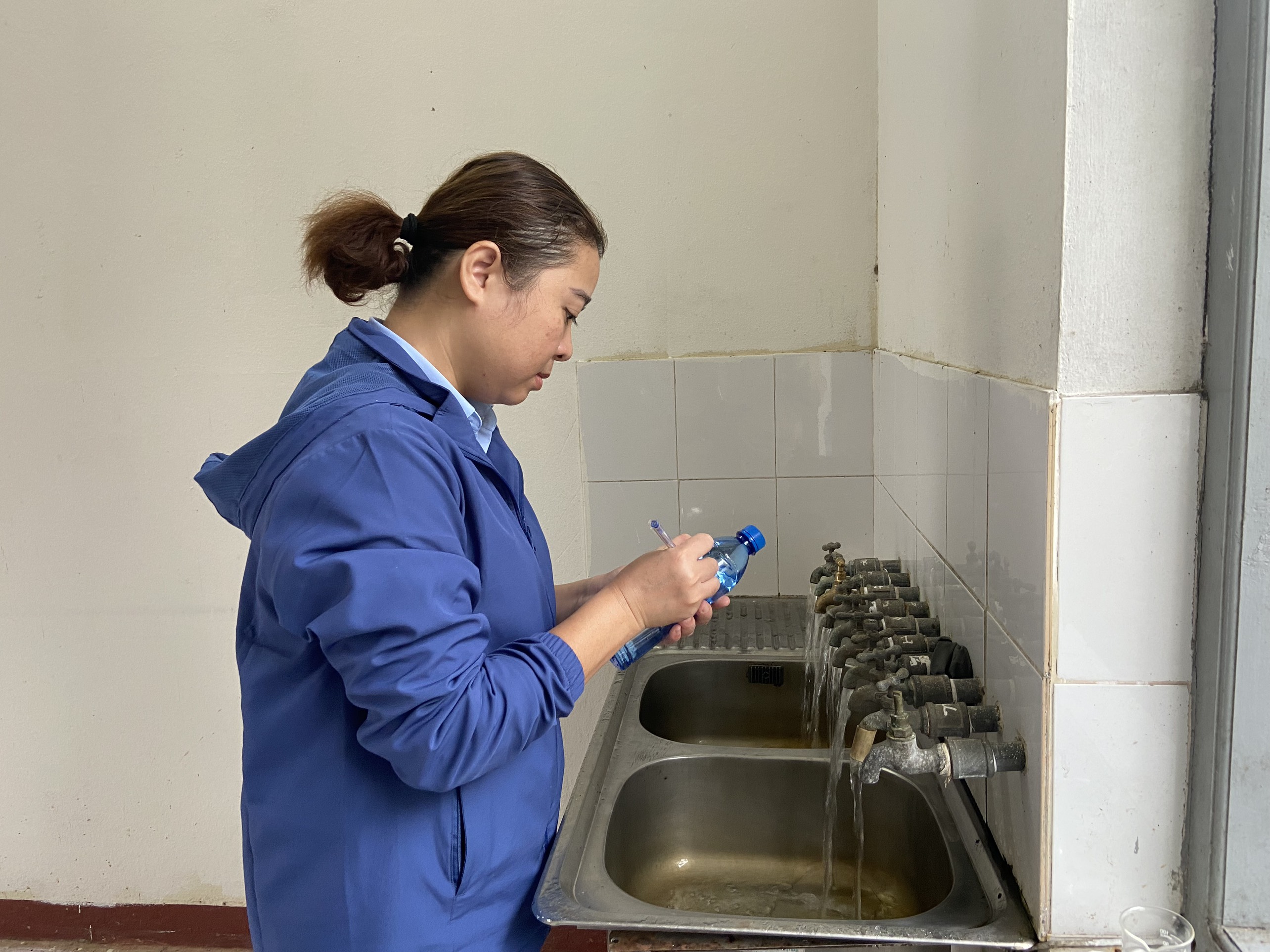 Cán bộ HueWACO lấy mẫu tại Nhà máy nước Chân Mây