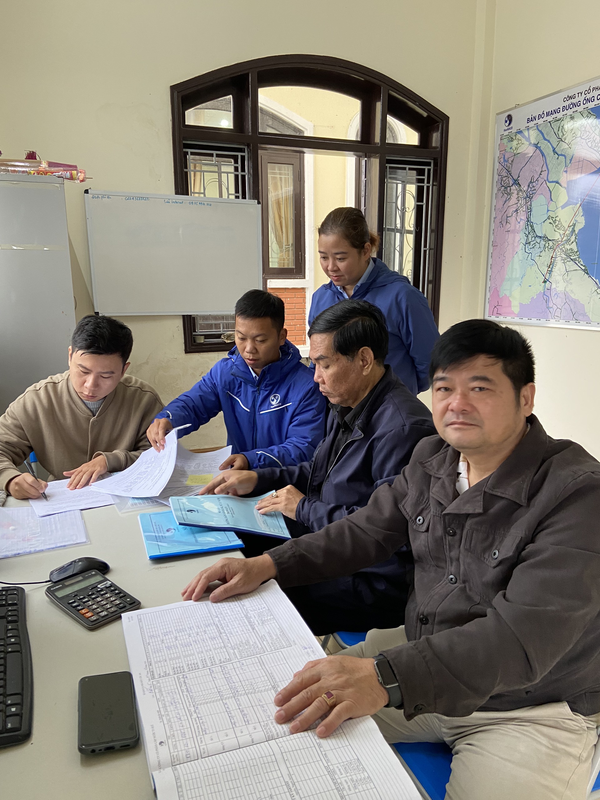 Đoàn làm việc với lãnh đạo Xí nghiệp cấp nước Hương Phú tại Nhà máy nước Chân Mây