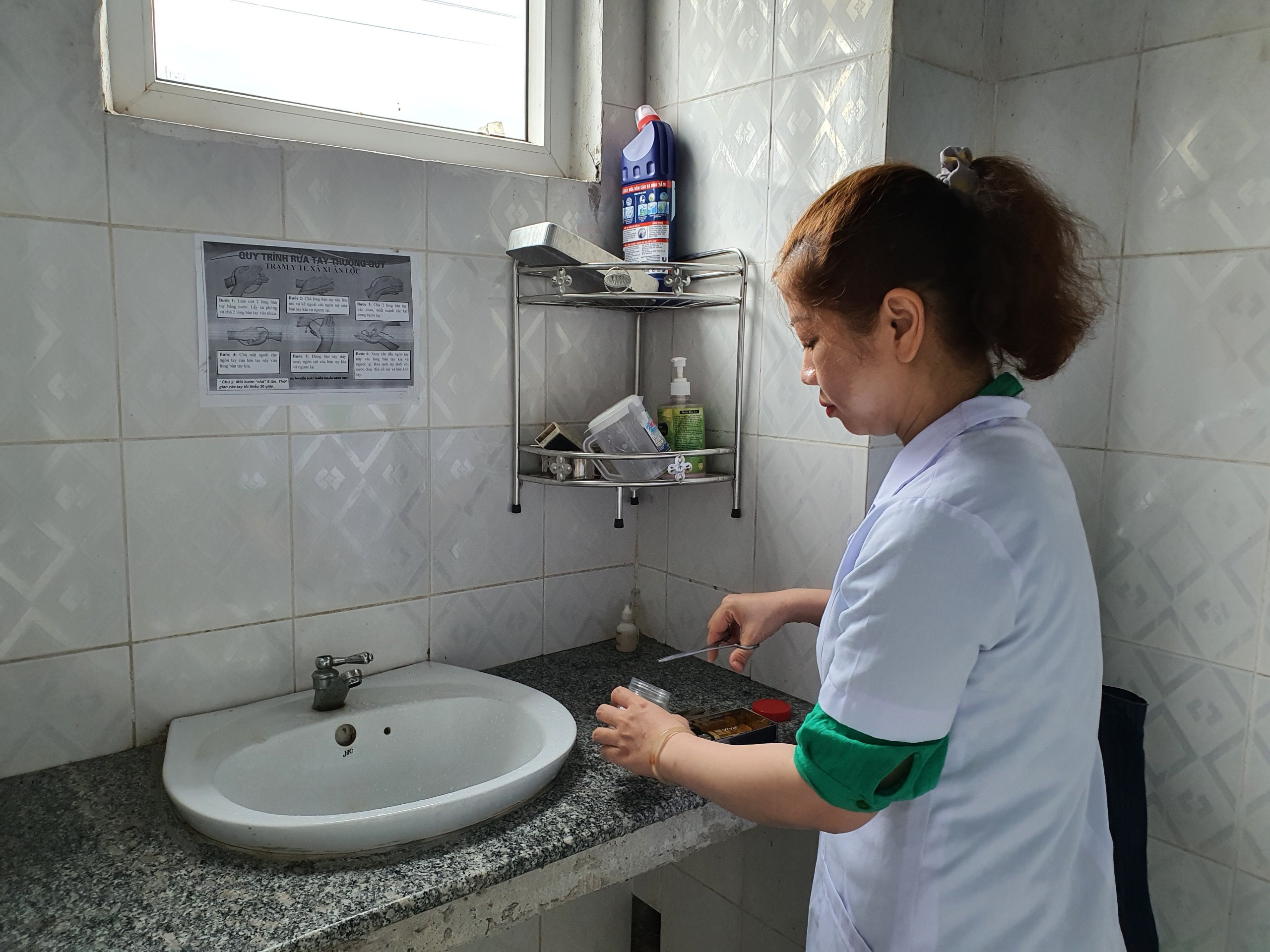 Cán bộ Khoa Xét nghiệm và Cán bộ HueWACO lấy mẫu tại Trạm y tế TT Khe Tre