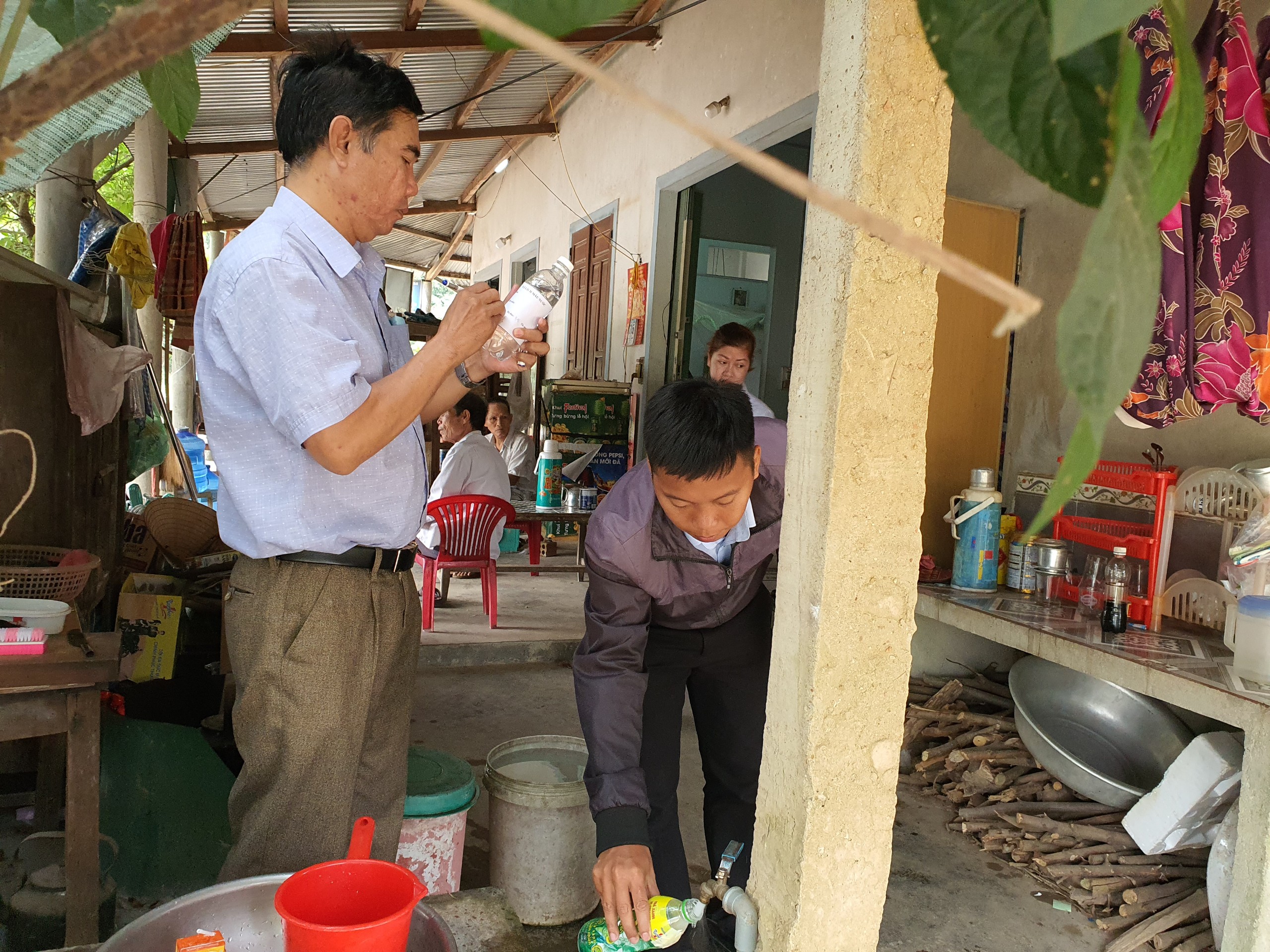 Cán bộ Khoa Xét nghiệm và Cán bộ HueWACO lấy mẫu tại hộ ông Hưng L.