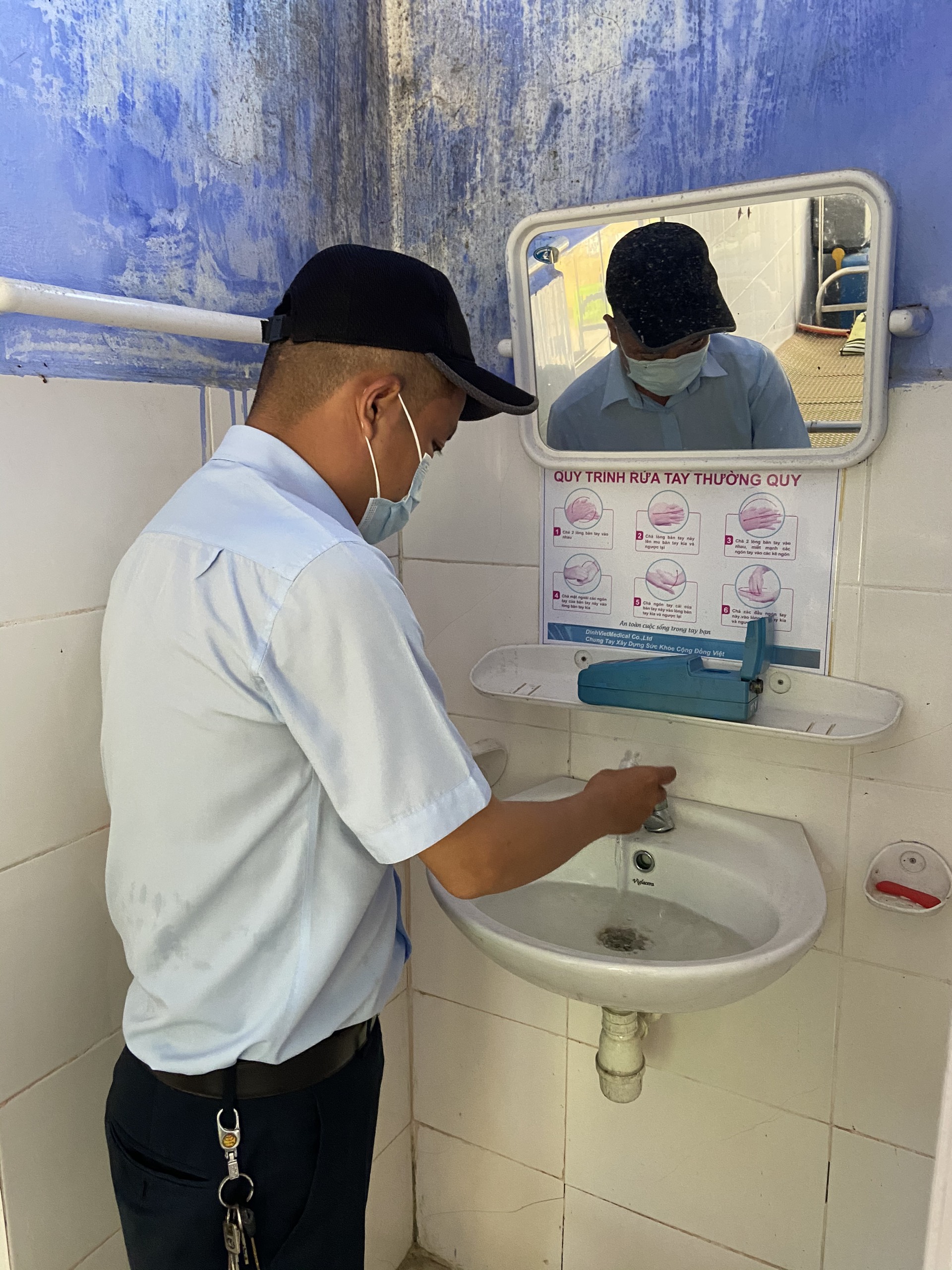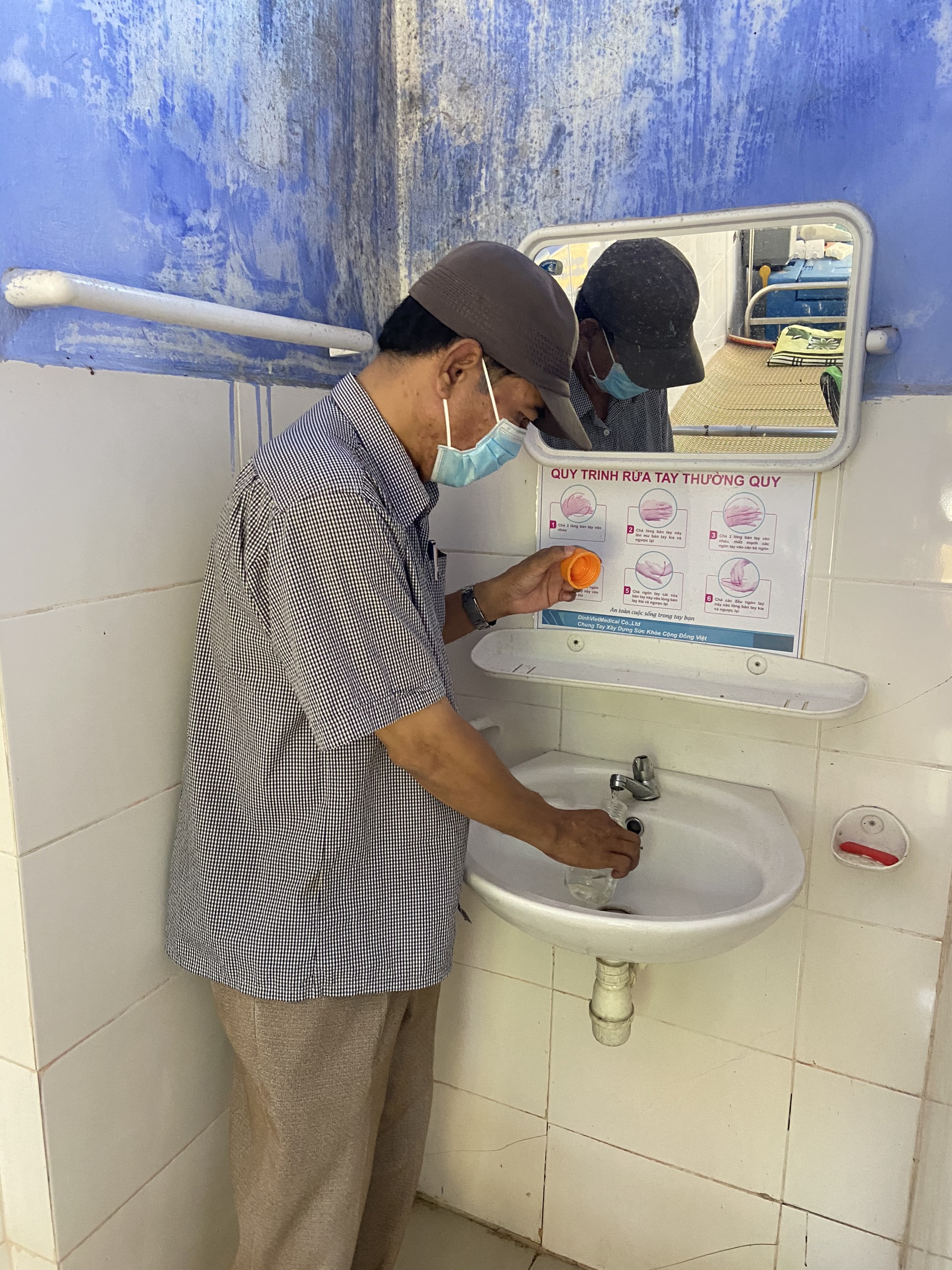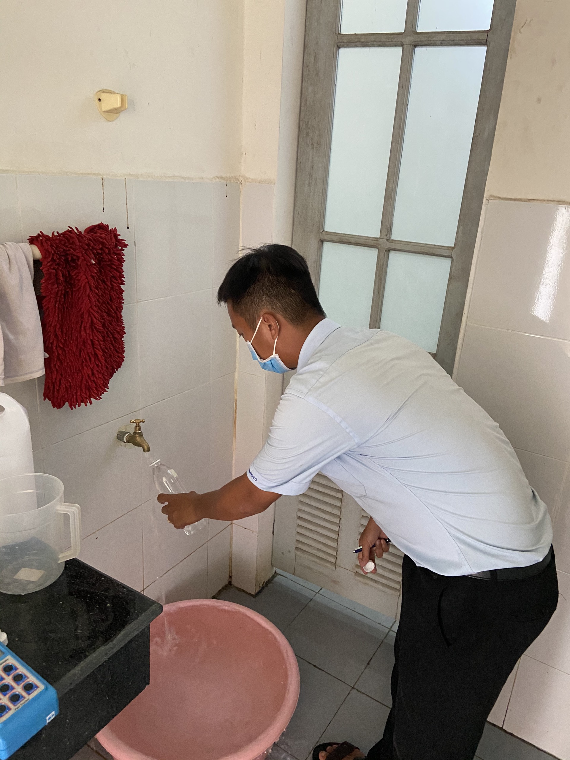 Cán bộ HueWACO lấy mẫu tại Trạm Y tế xã Phong An, huyện Phong Điền