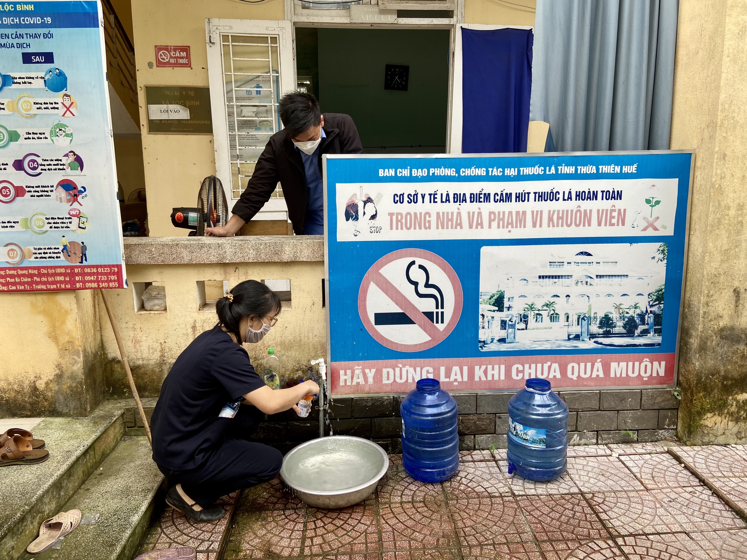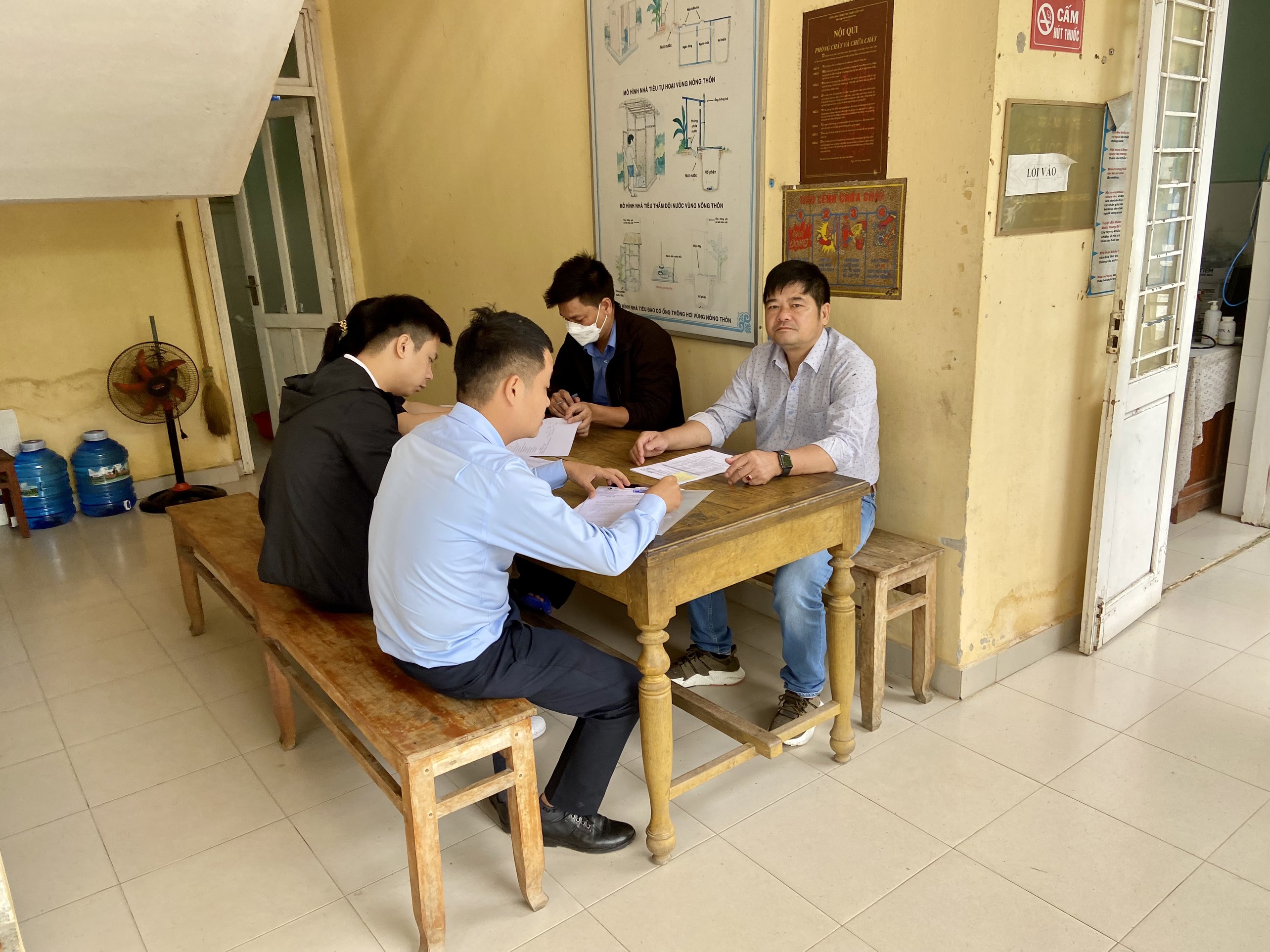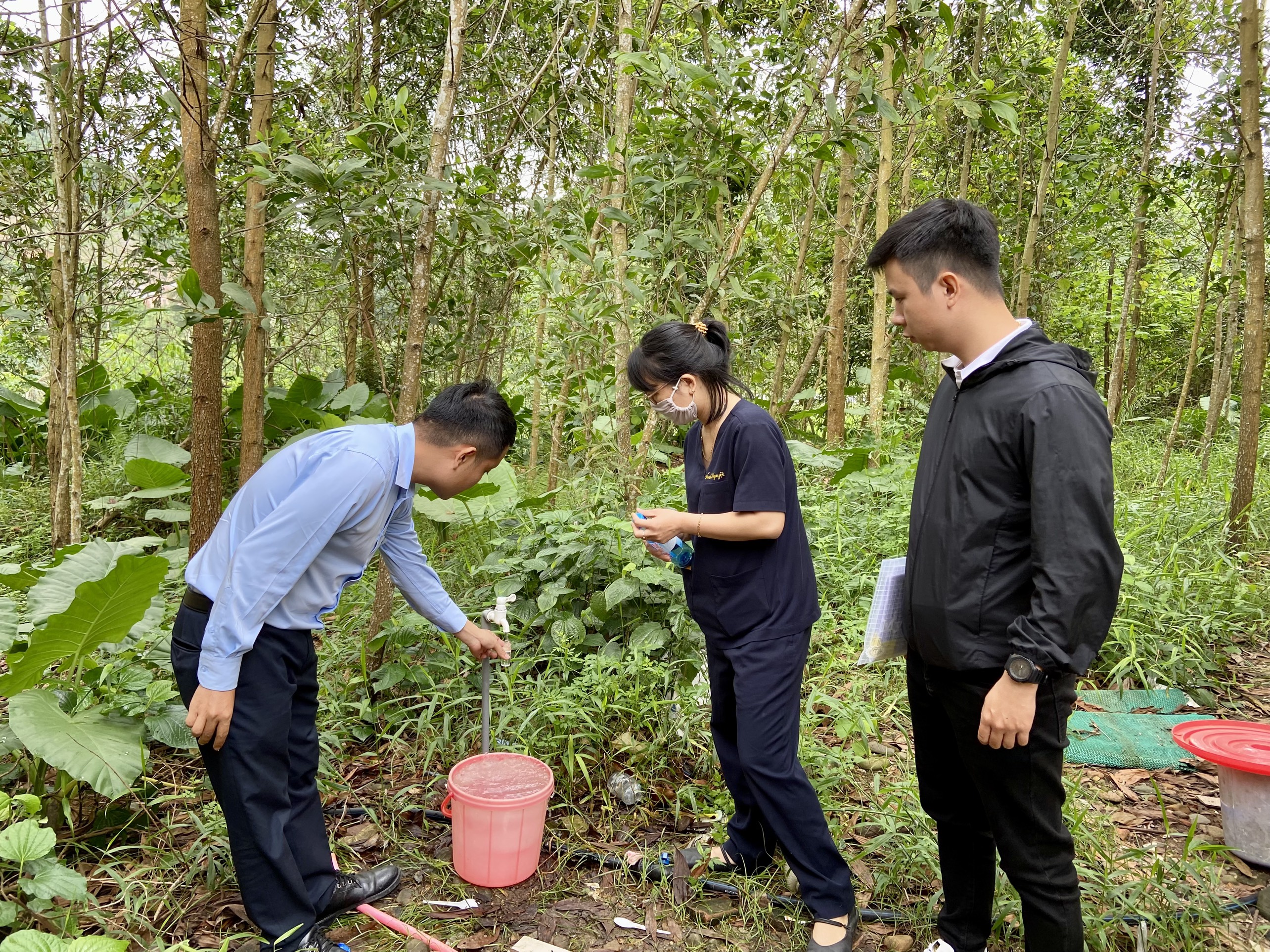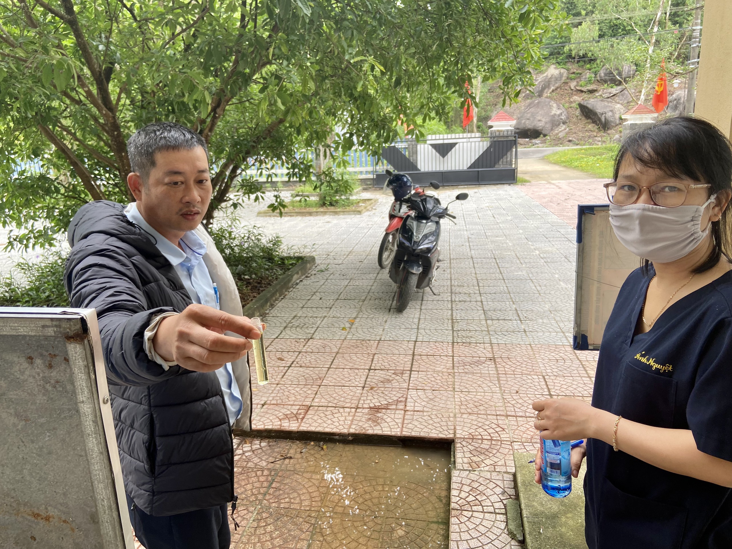 Cán bộ Khoa Xét nghiệm và cán bộ HueWACO lấy mẫu tại Trạm Y tế Lộc Bình, huyện Phú Lộc