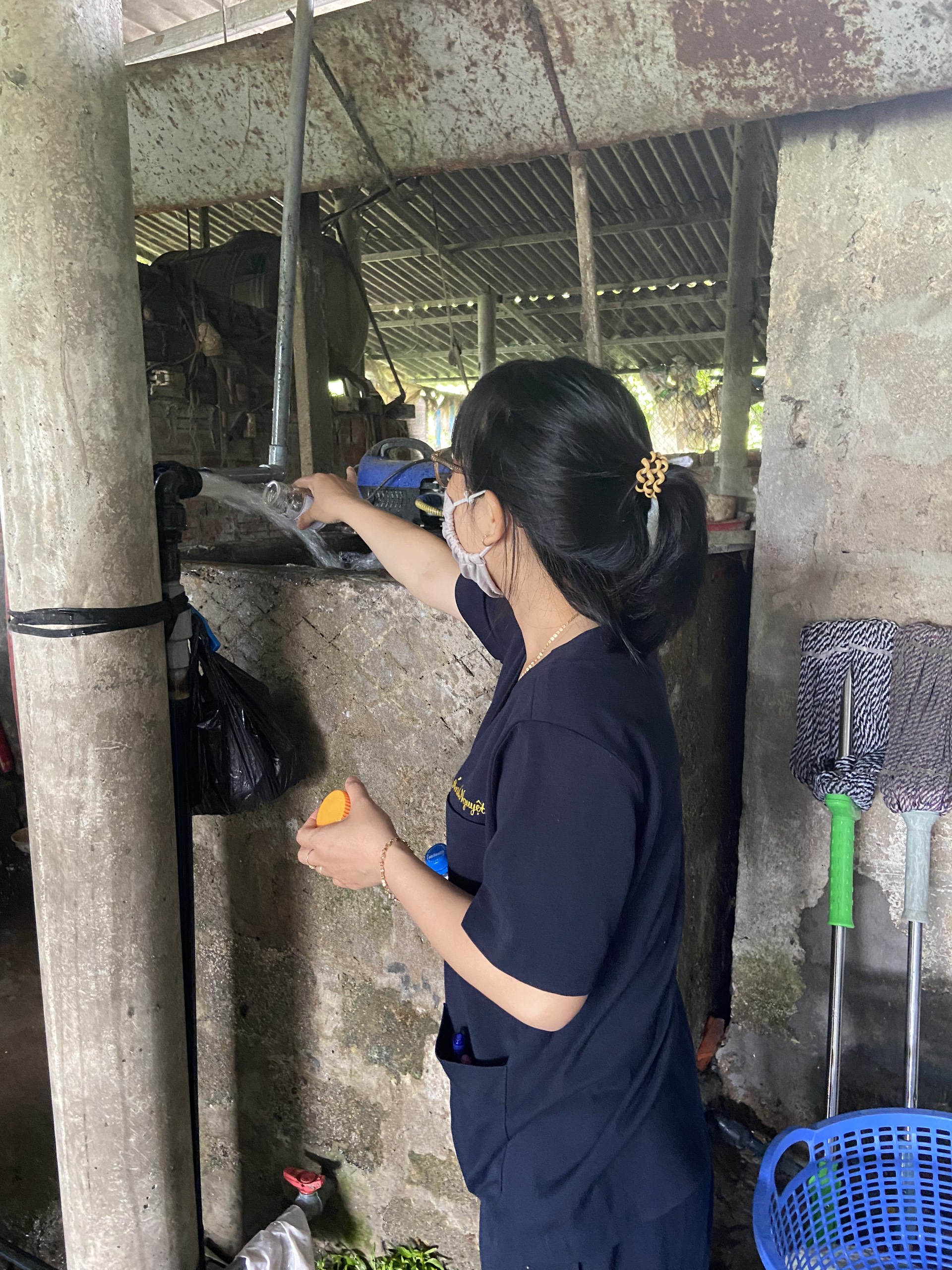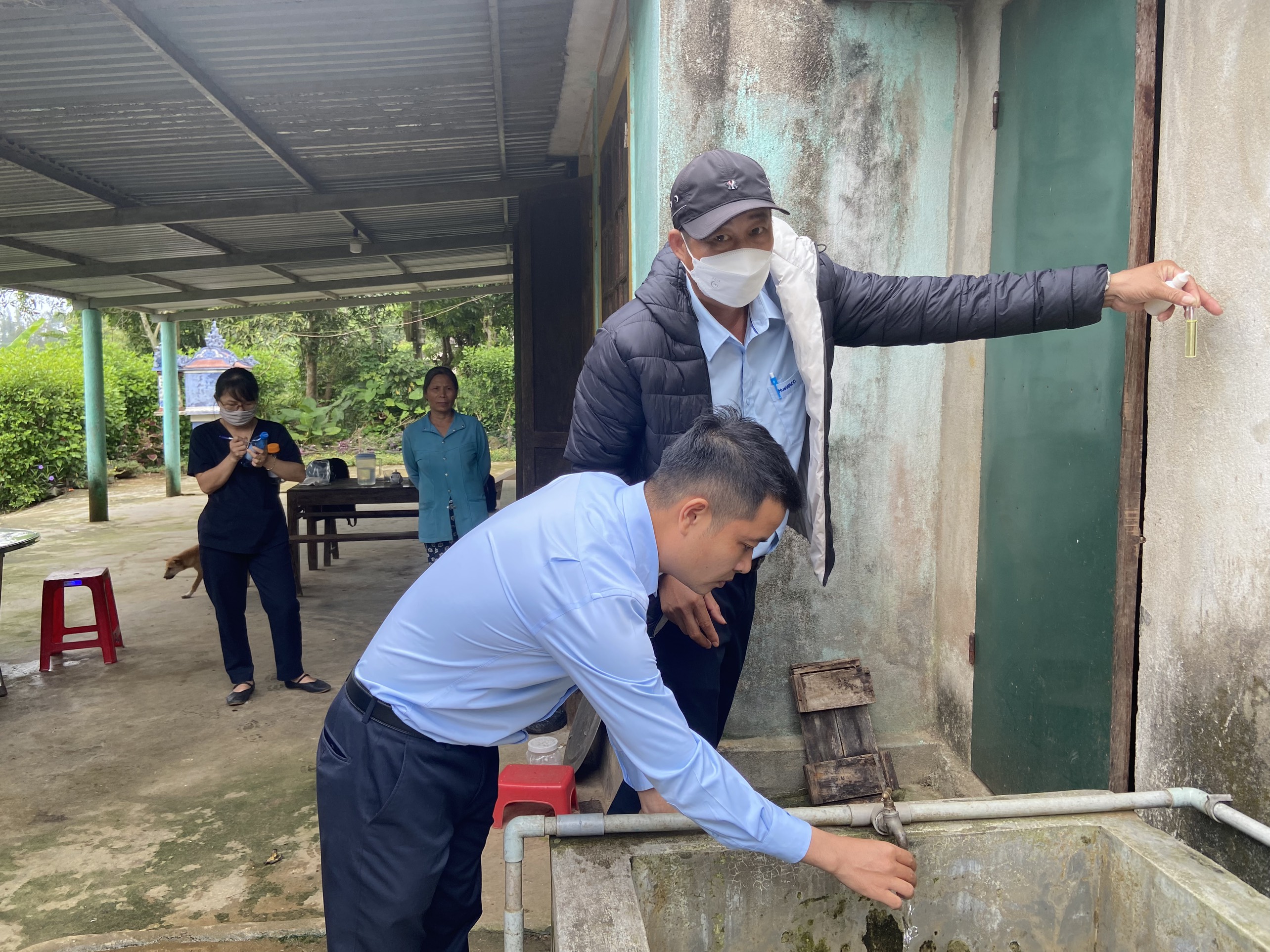 Cán bộ HueWACO lấy mẫu tại hộ Ông Ngô Văn Vinh, thôn 7, xã Thượng Long, huyện Nam Đông
