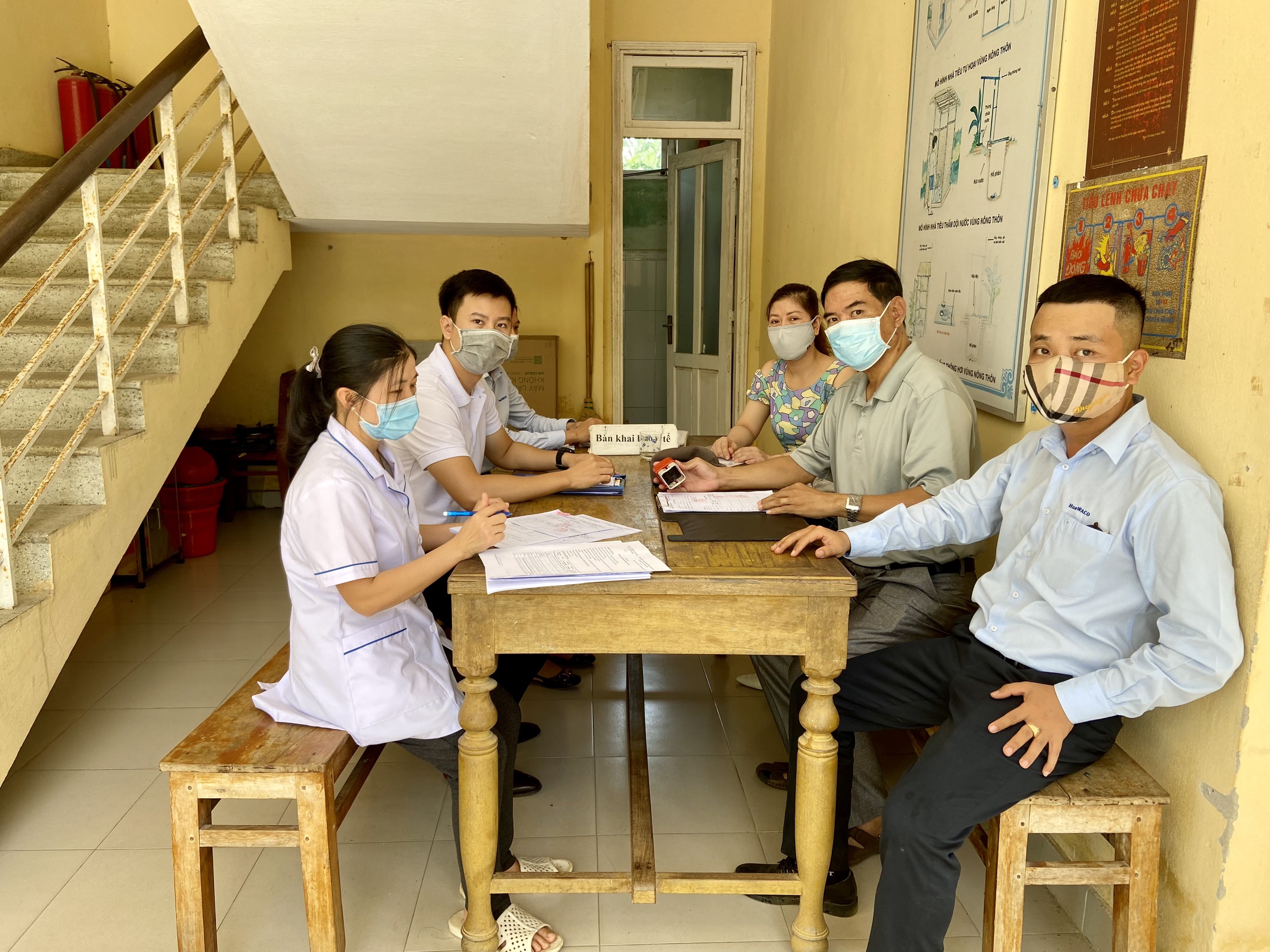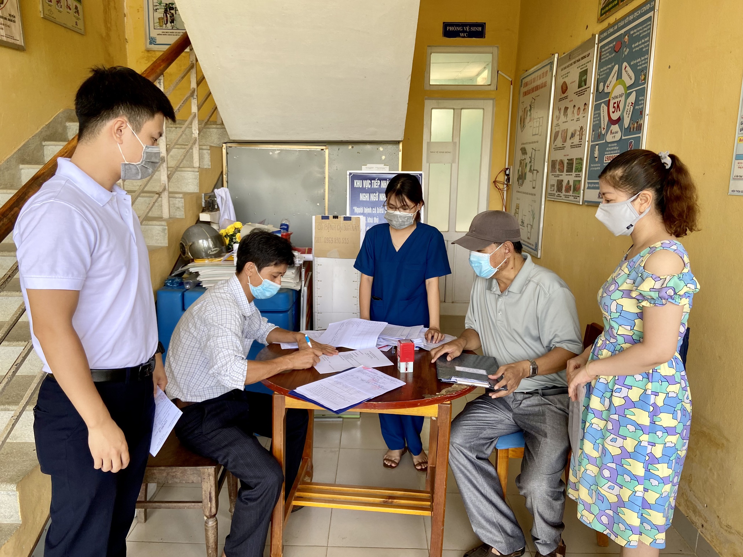 Cán bộ khoa Xét nghiệm lấy mẫu tại Trạm y tế Lộc Bình huyện Phú Lộc