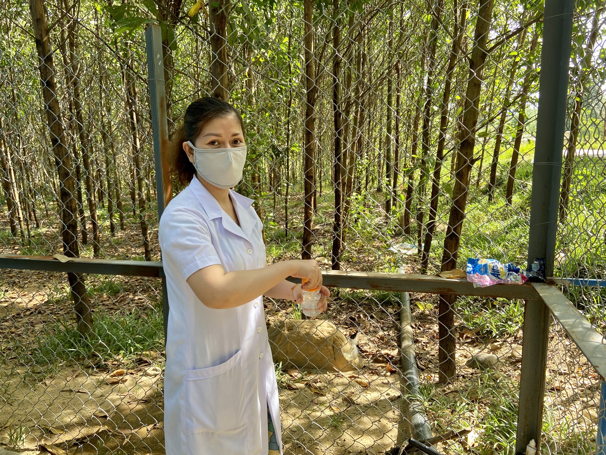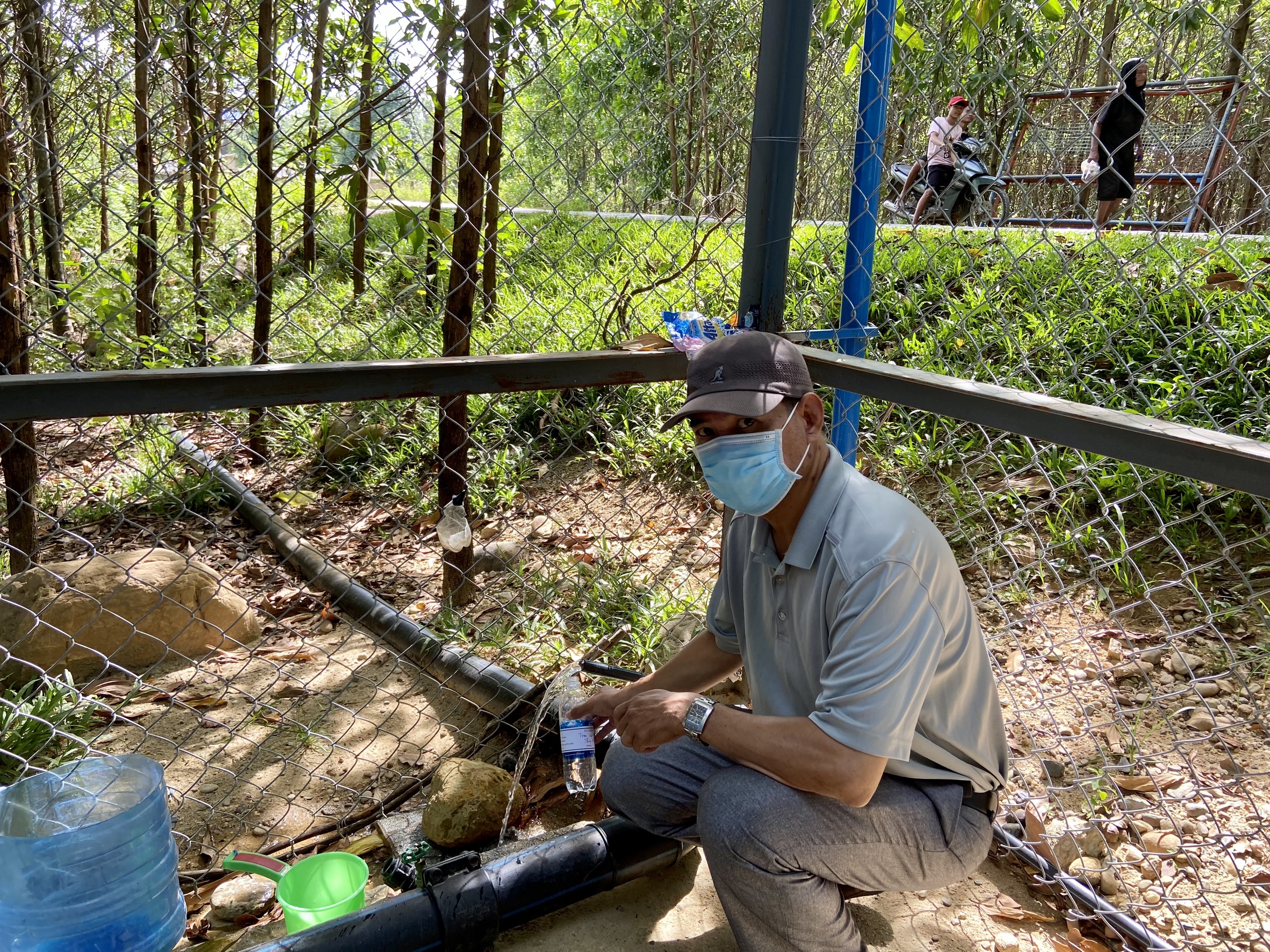 Cán bộ khoa Xét nghiệm lấy mẫu tại khu xử lý nước sạch Thượng Nhật huyện Nam Đông