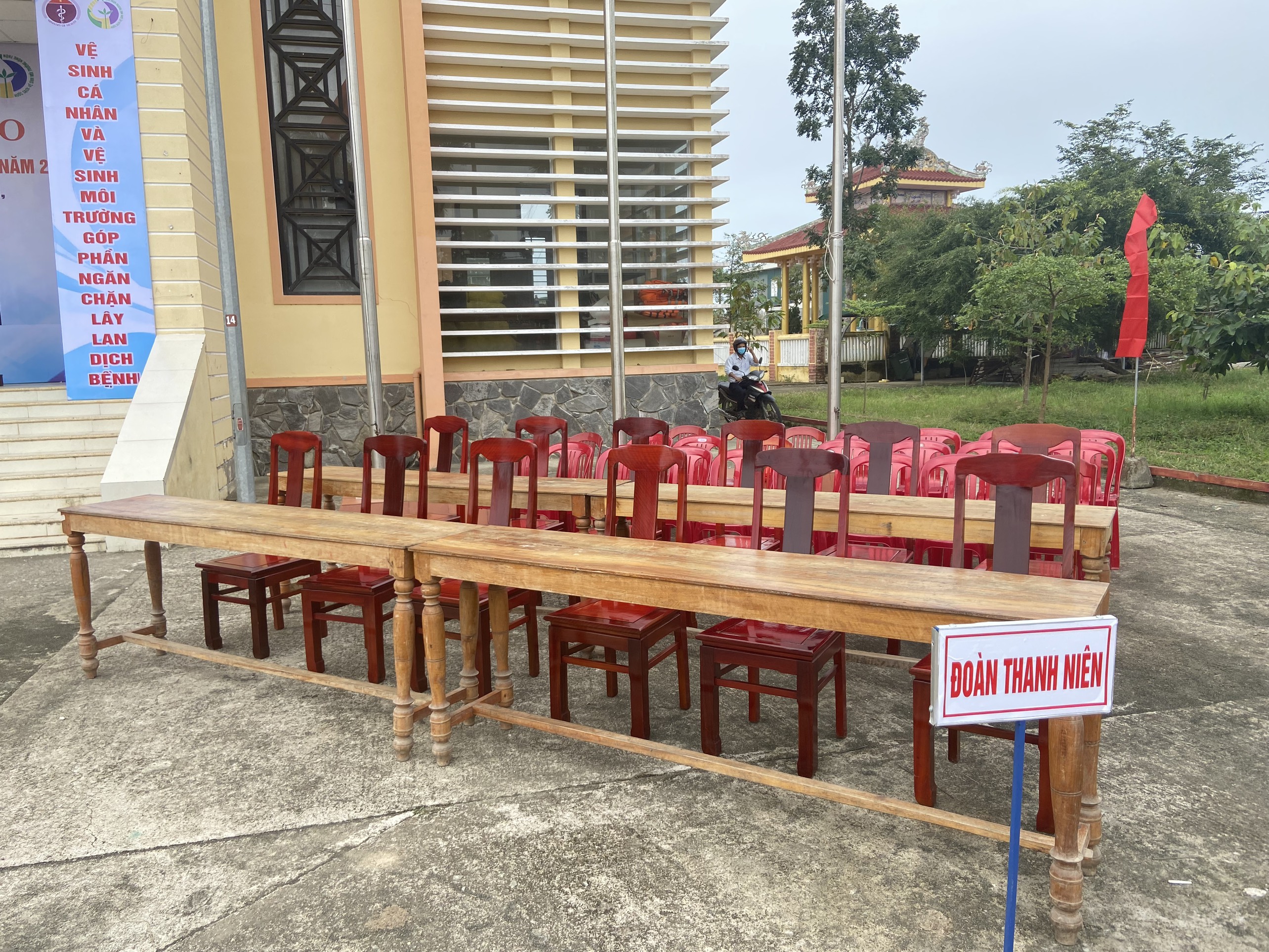 Công tác chuẩn bị tại nhà văn hóa xã Quảng Phước, đị điểm tổ chức lễ phát động