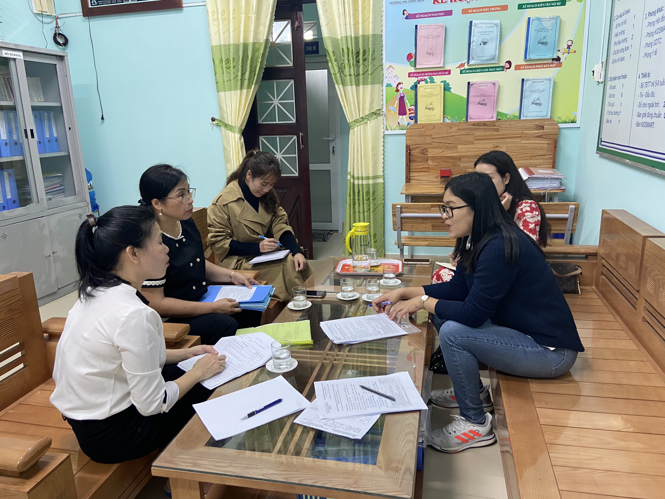 Đoàn làm việc tại trường mầm non Vinh Hiền