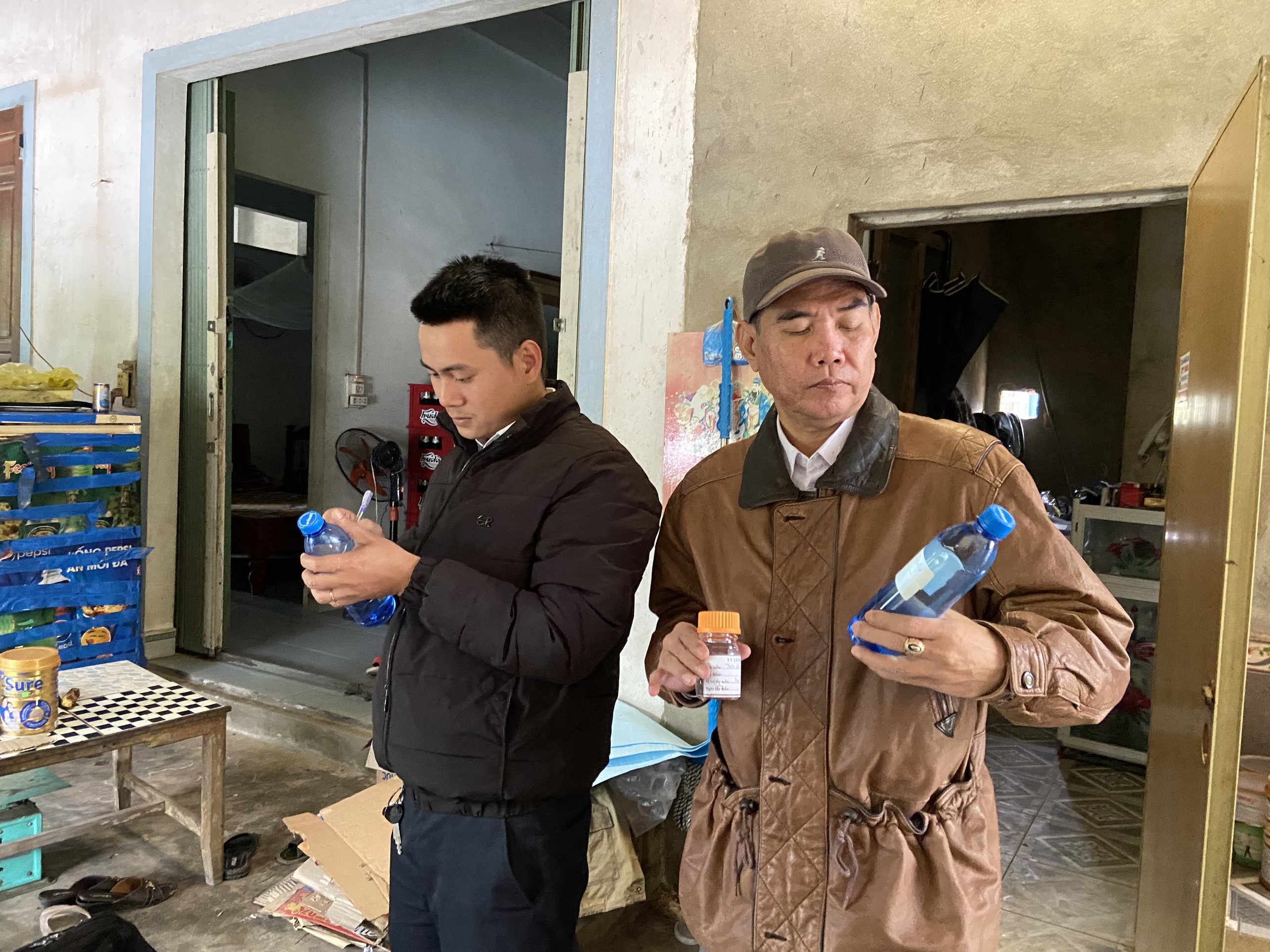 Lấy mẫu nước tại hộ gia đình Ông Trần Đình Nhự, thôn Hưng Lộc, xã Xuân Lộc