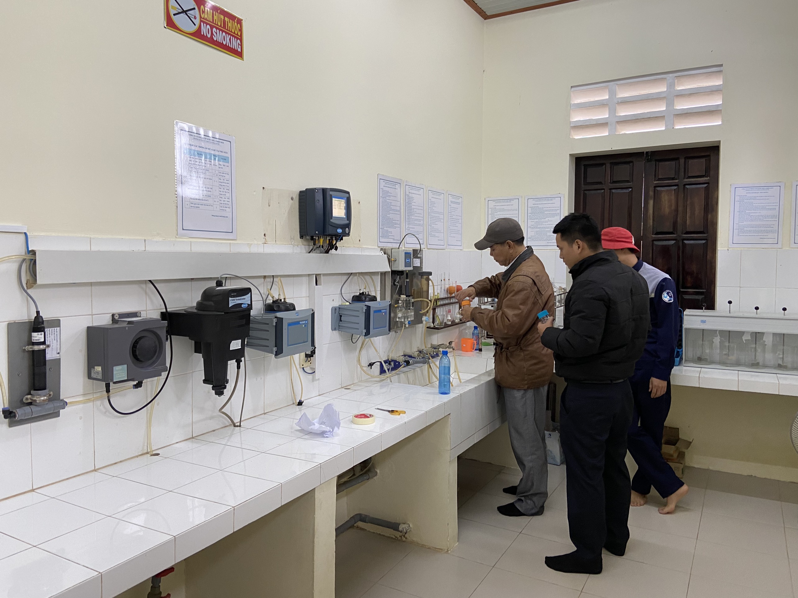 Lấy mẫu nước tại nhà máy nước sạch Nam Đông