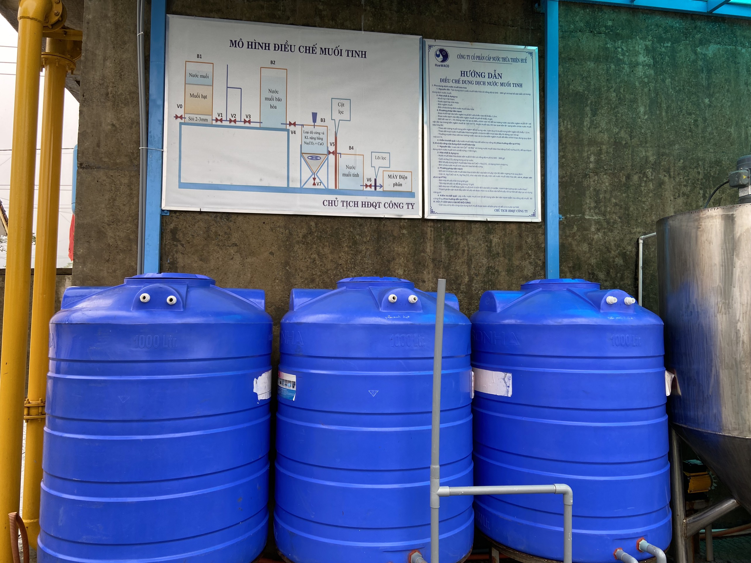 Khu vực điều chế muối tinh tại nhà máy nước sạch Nam Đông
