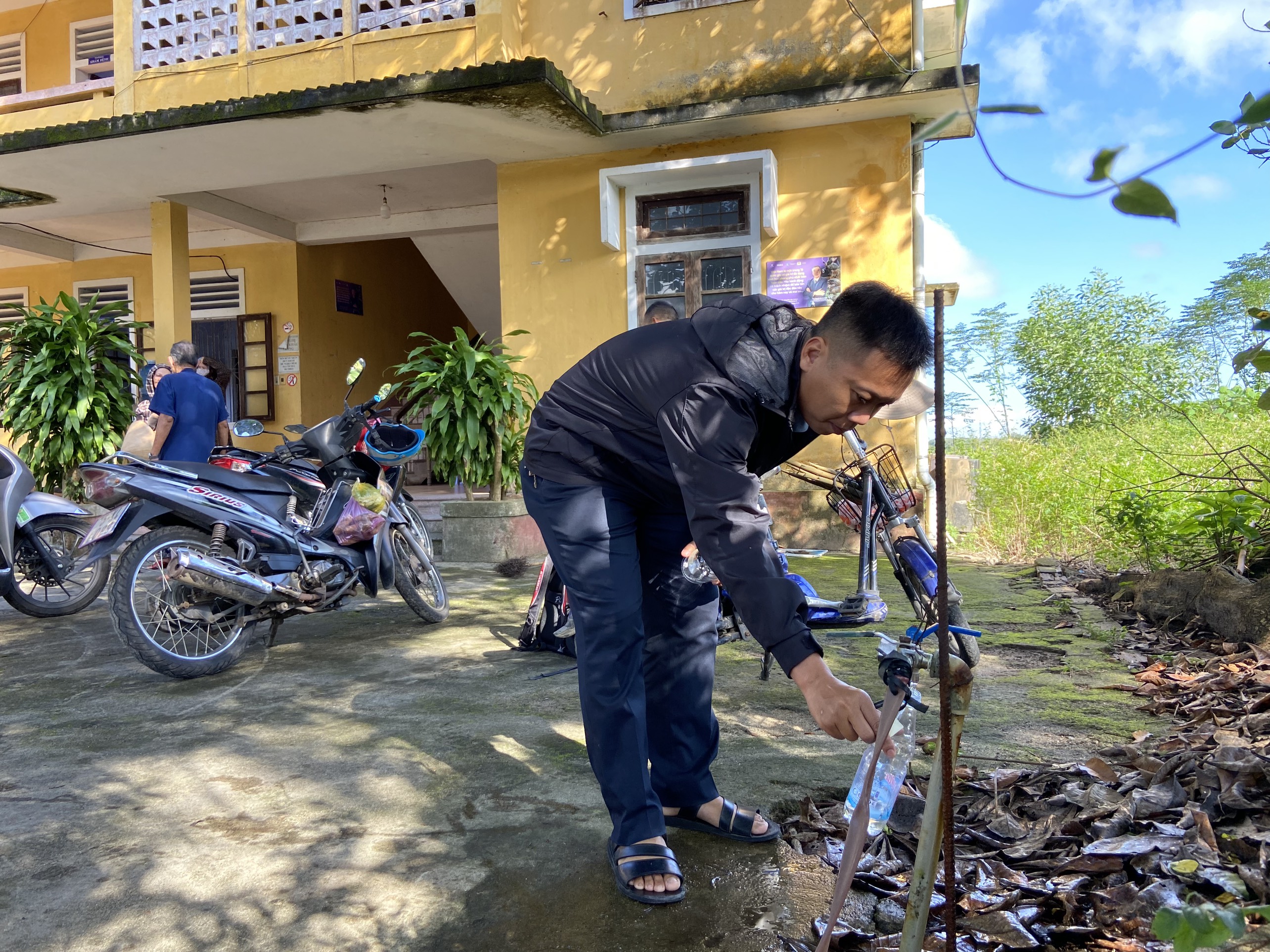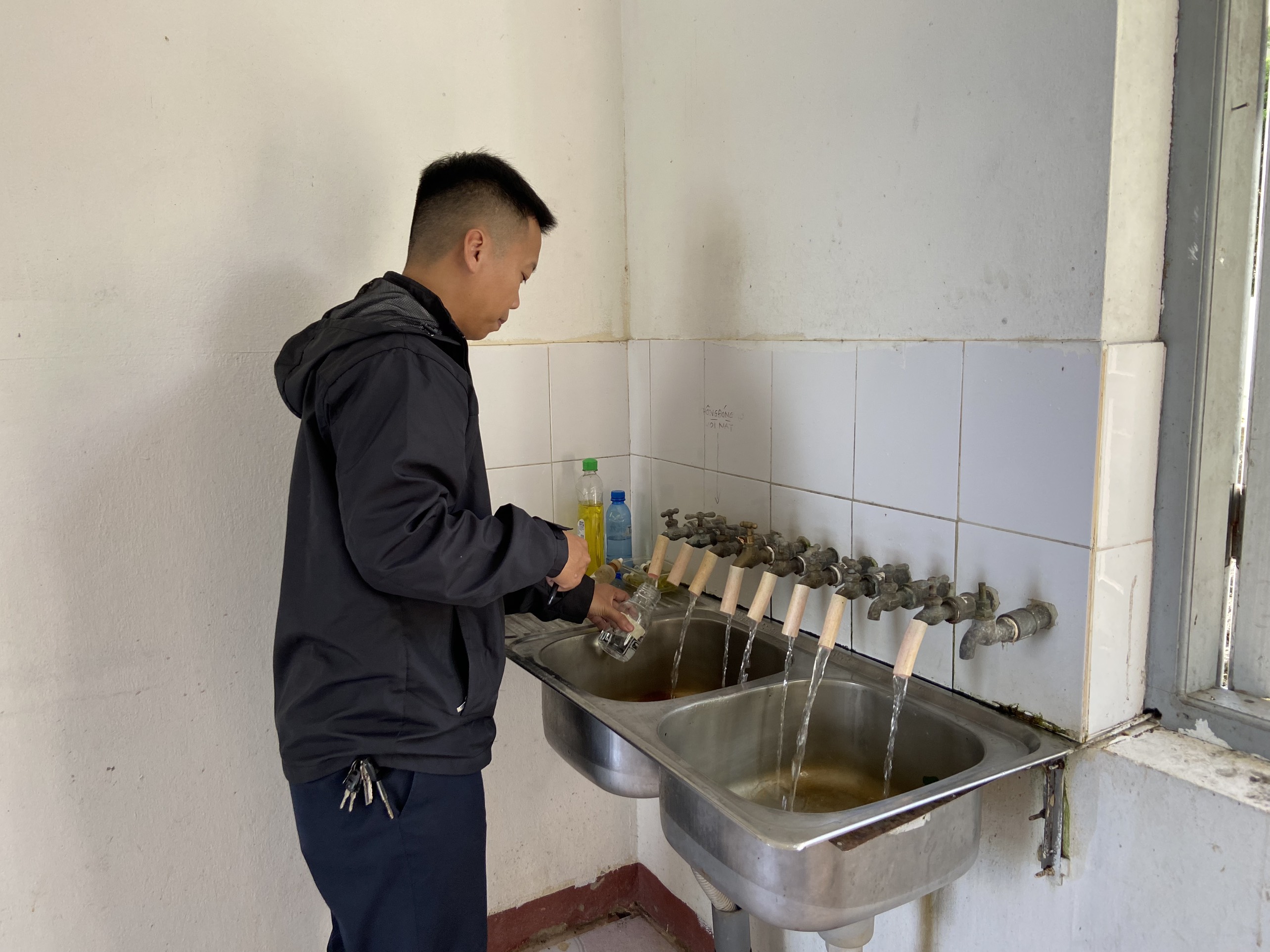 Cán bộ HueWACO lấy mẫu nước tại Trạm Y tế xã Lộc Tiến