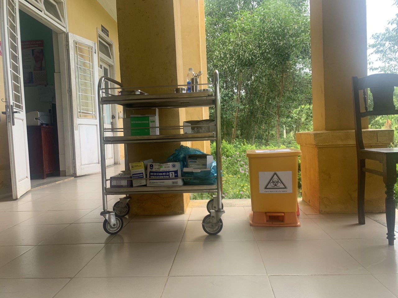 Thùng chứa chất thải tại Trạm Y tế xã Thượng Nhật