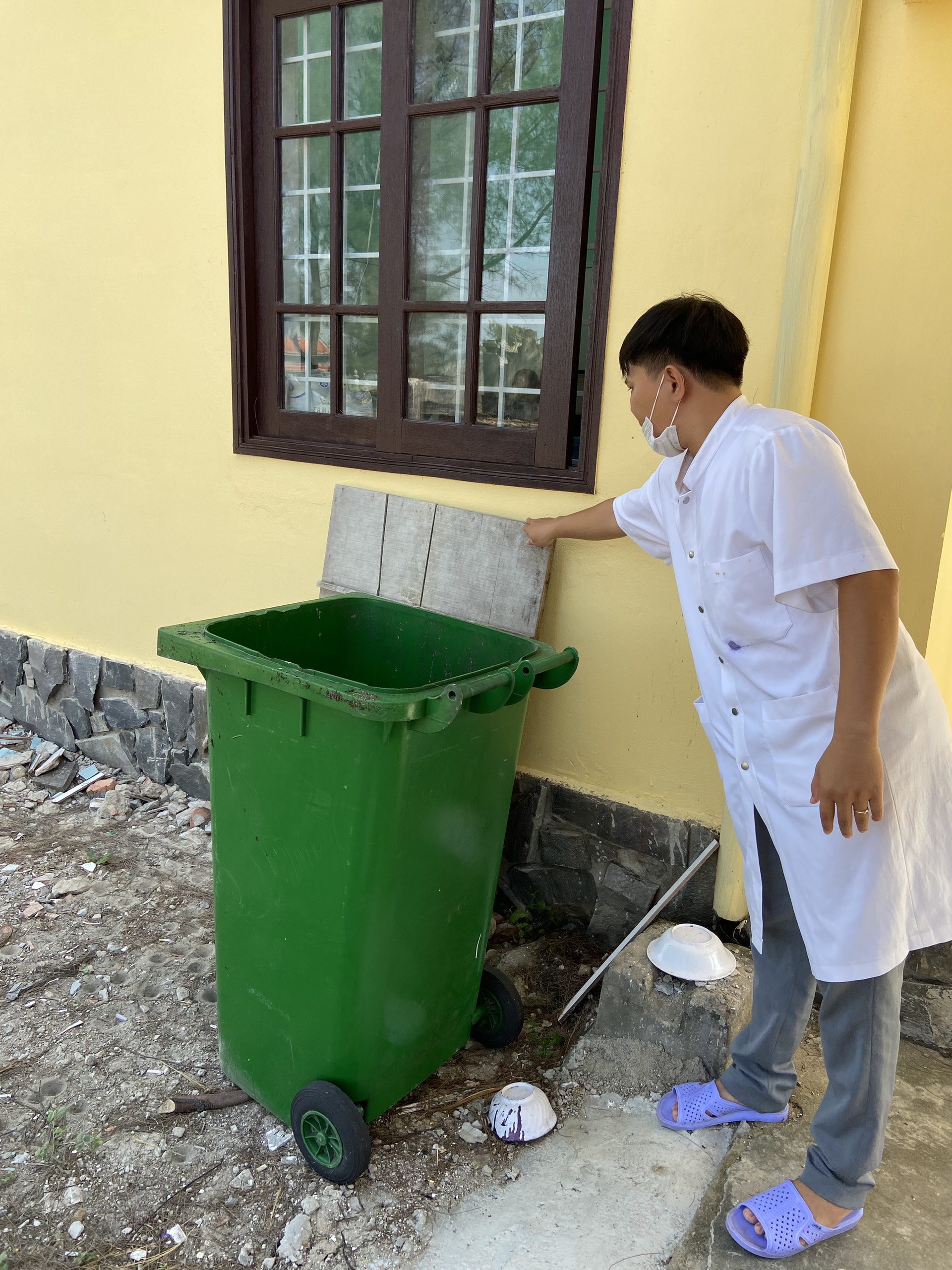 Thùng chứa chất thải tại Trạm Y tế xã Quảng Công