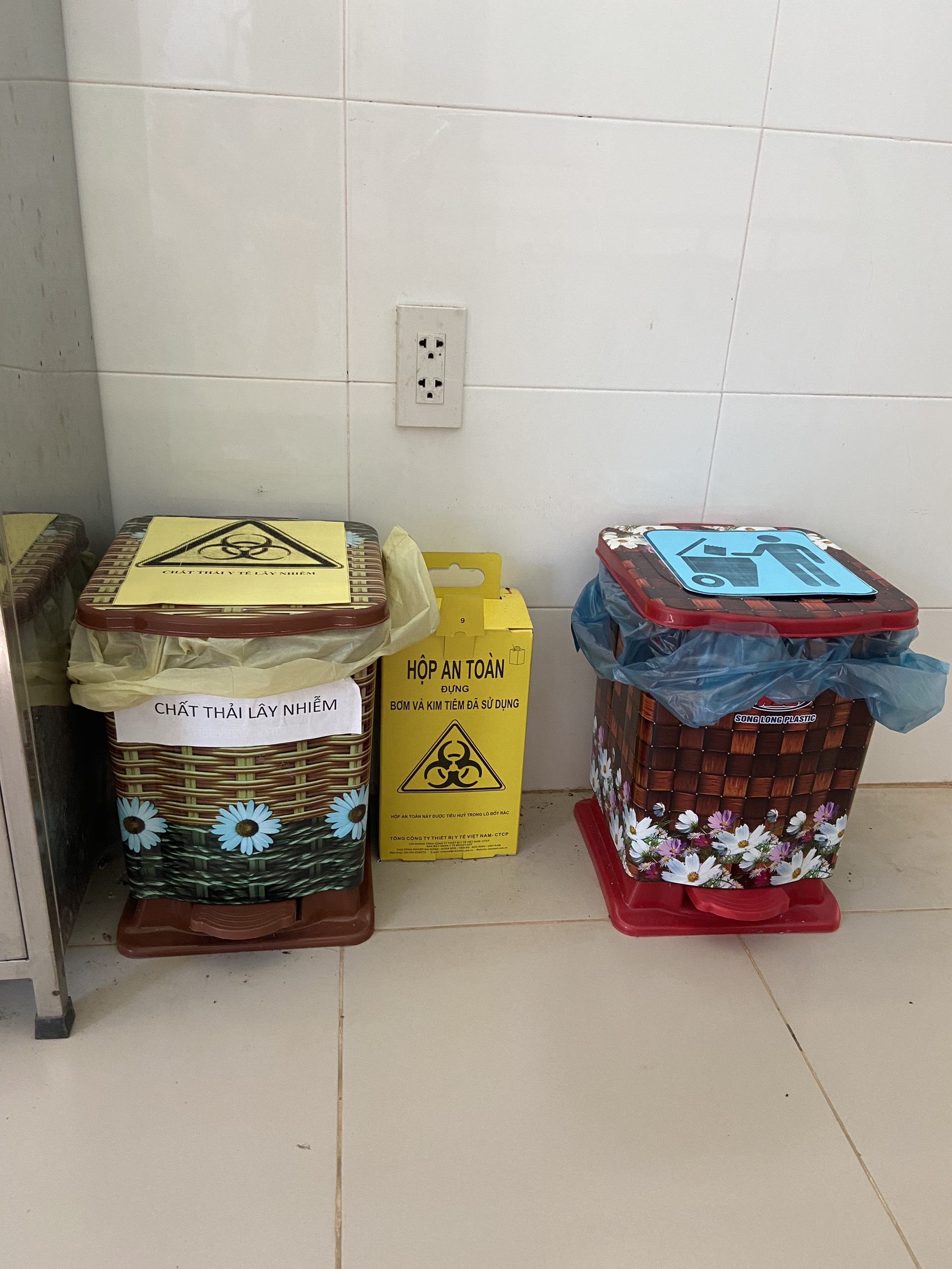 Thùng chứa chất thải tại Trạm Y tế xã Hương Hữu