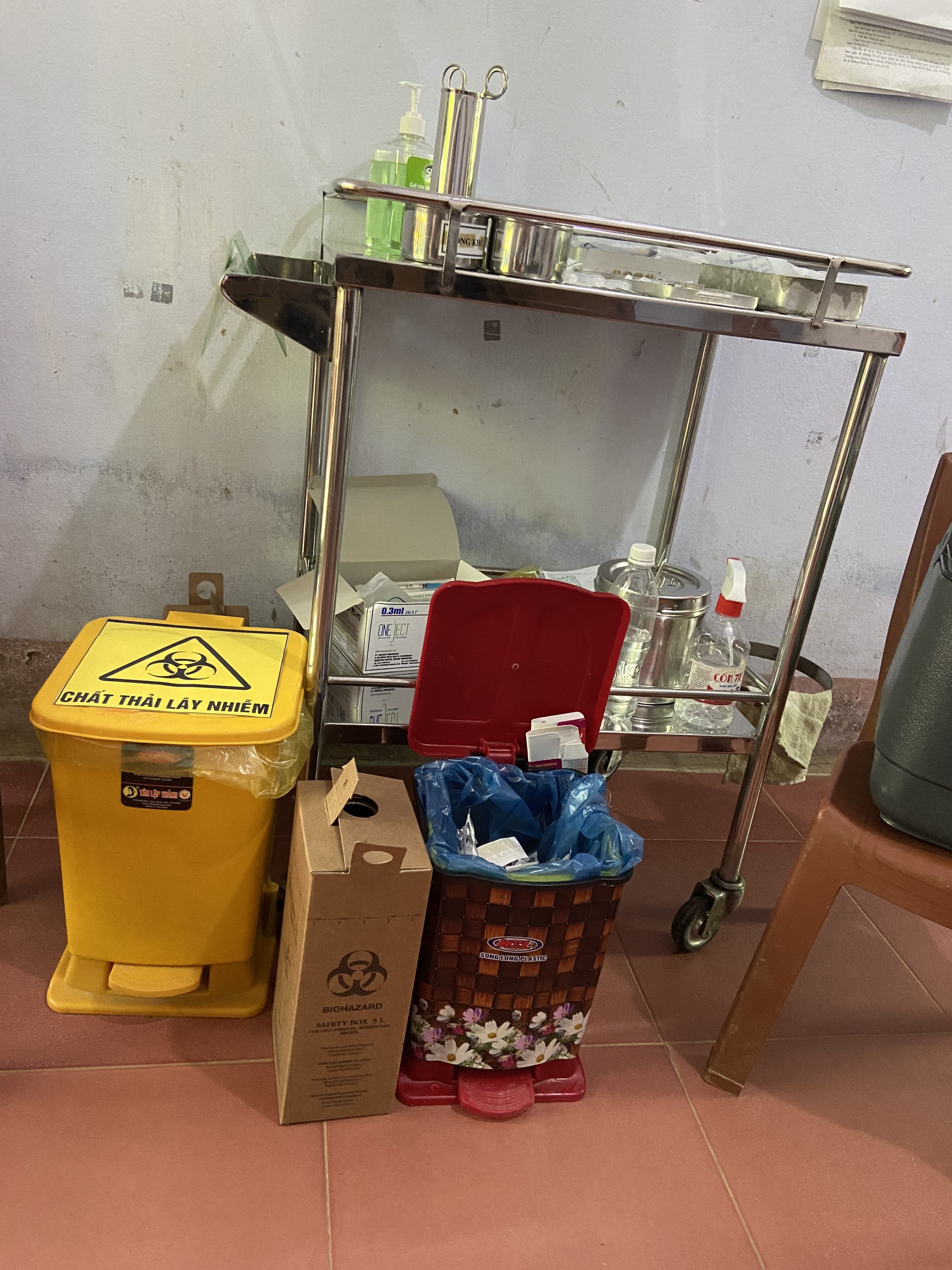 Thùng chứa chất thải tại Trạm Y tế xã Hương Sơn