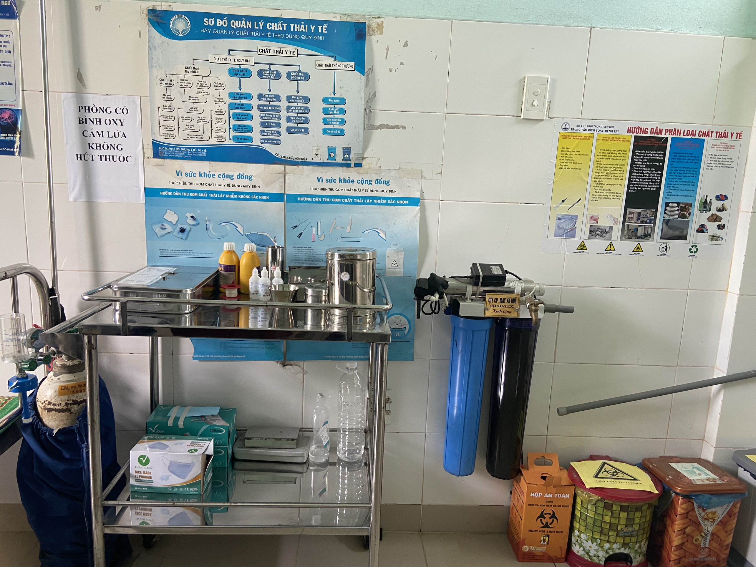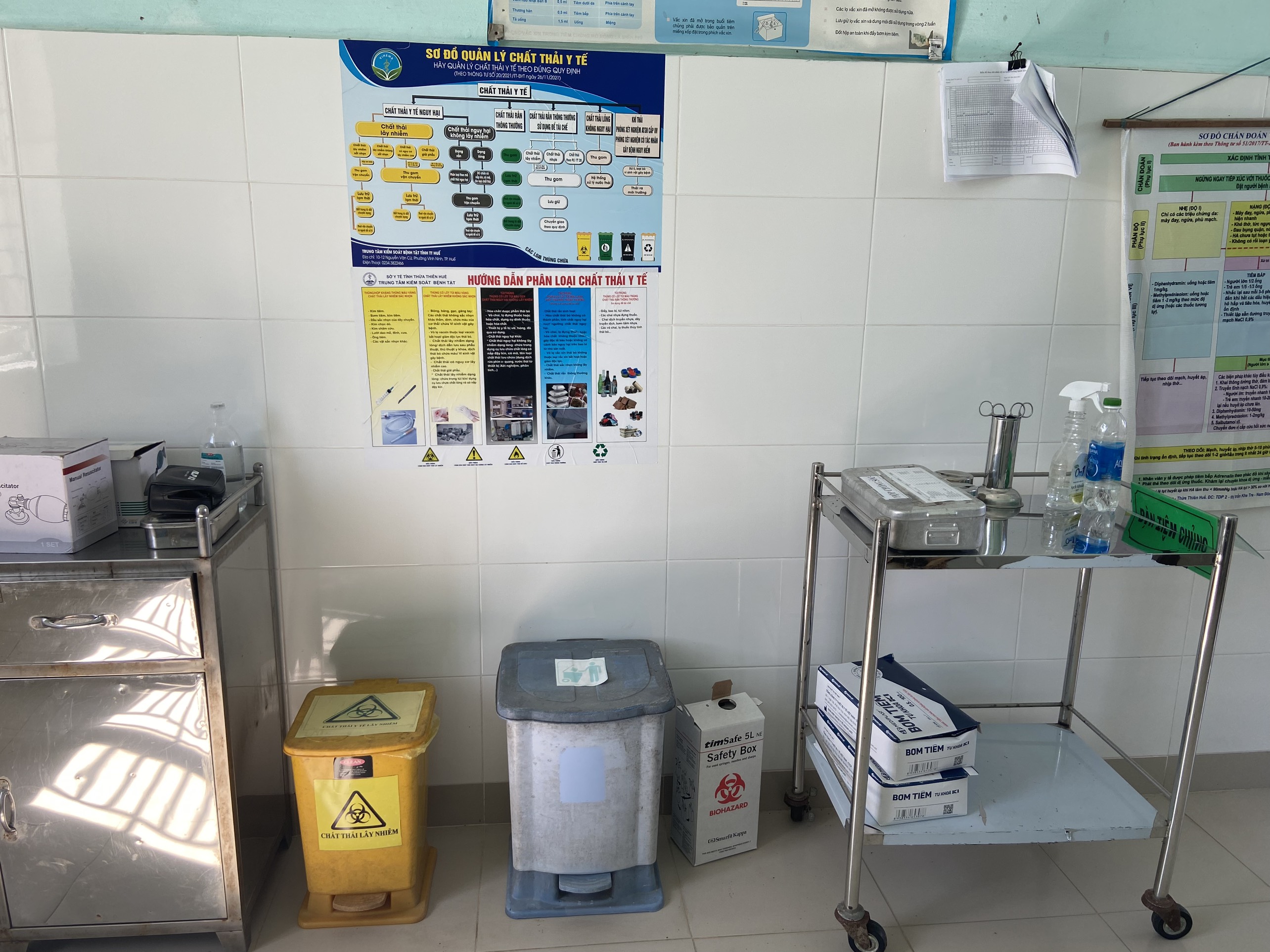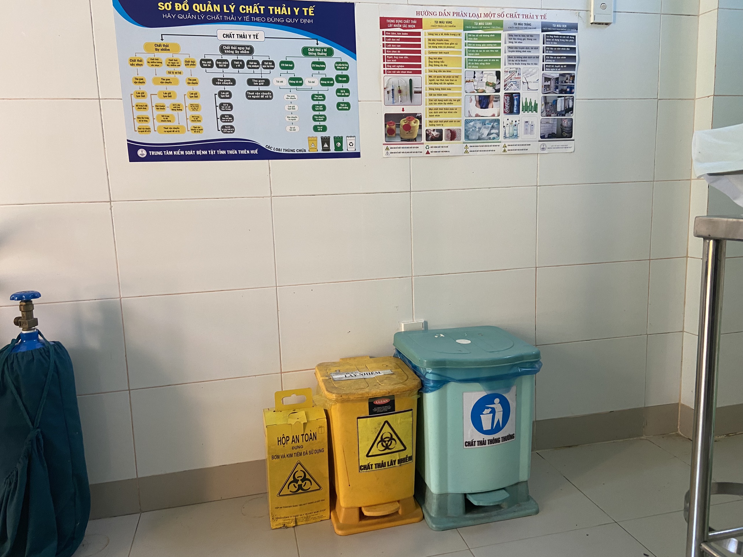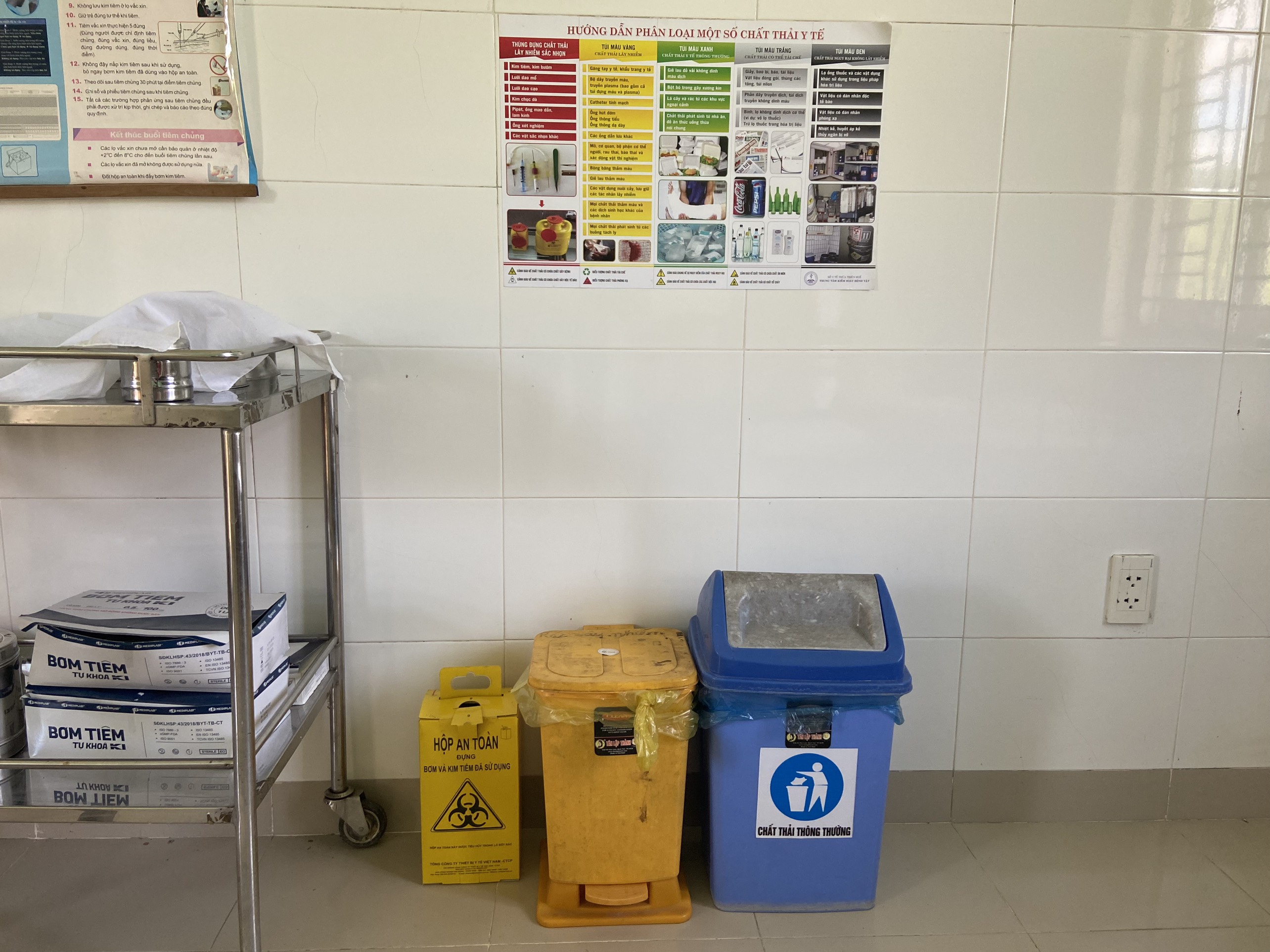 Khu vực lưu giữ chất thải tại trạm Y tế Thượng Long.