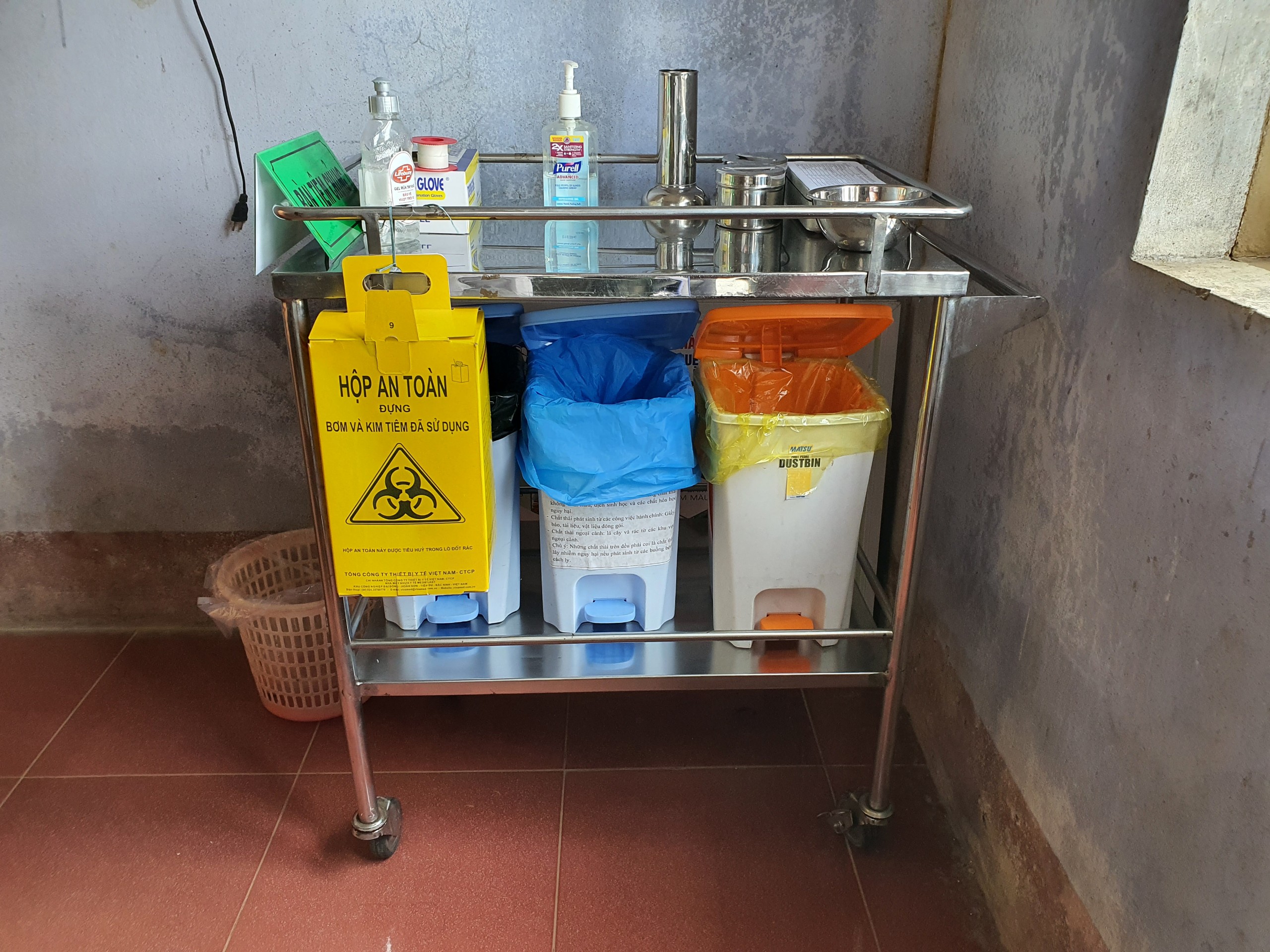 Thùng chứa và khu vực lưu giữ chất thải của Trạm Y tế xã Hương Sơn
