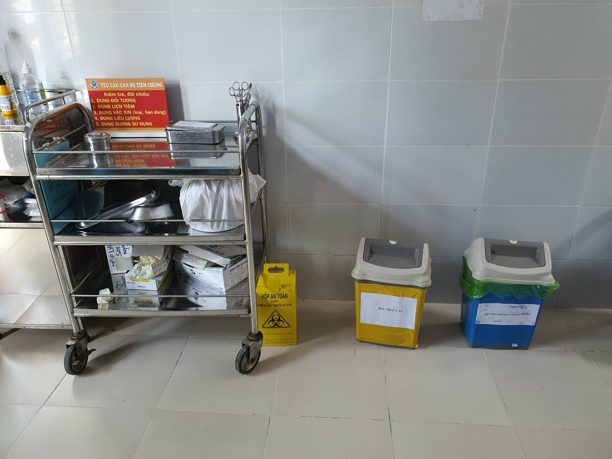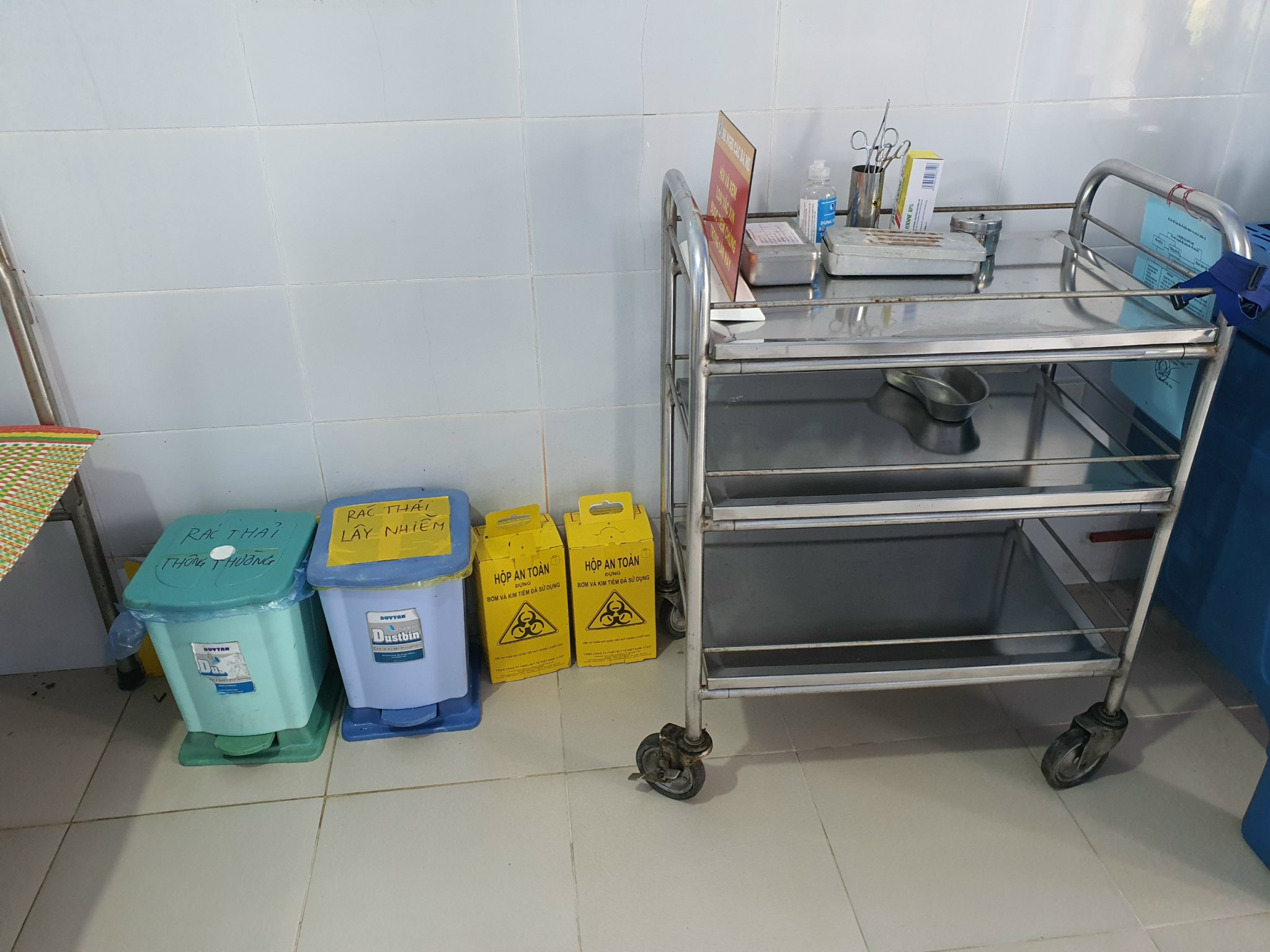 Thùng chứa chất thải y tế tại Trạm y tế xã Phú Vinh