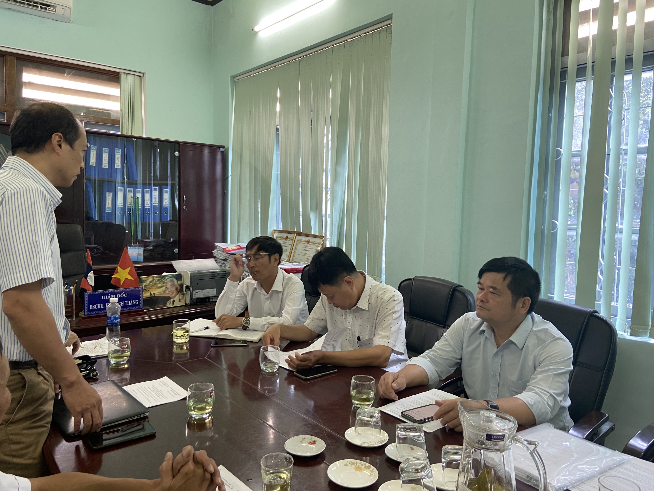 Đoàn tổng kết công tác phòng chống dịch Covid-19 của đơn vị, xử lý chất thải y tế, tình hình cách ly,... đánh giá các tiêu chí về bệnh viện, an toàn sinh học, quản lý chất thải y tế bệnh viện, kết quả quan trắc môi trường,... và các nguy cơ rủi ro của BĐKH đối với hệ thống y tế của Trung tâm y tế huyện A Lưới.