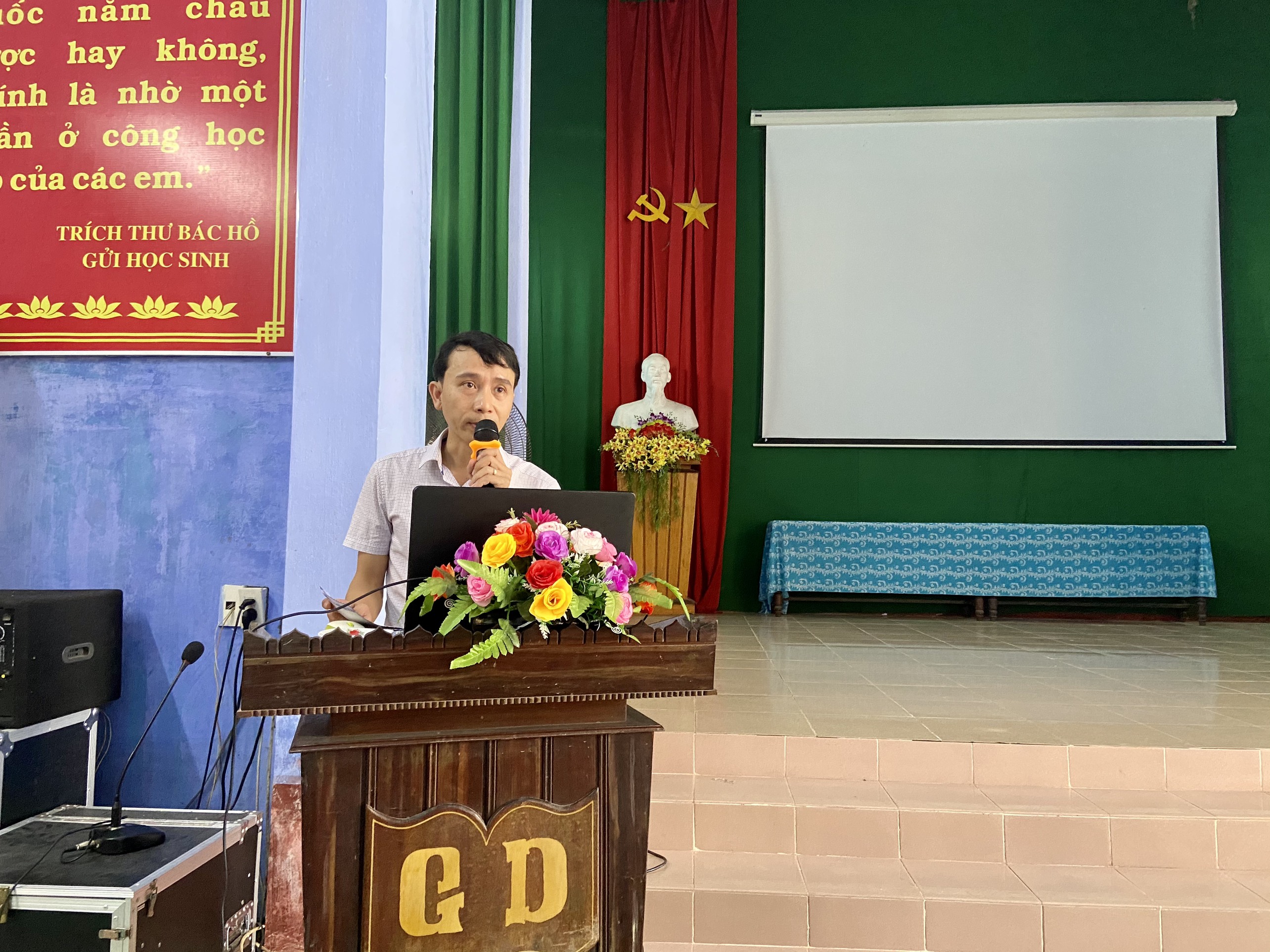 Thầy Hoàng Ngọc Hạnh - chuyên viên Phòng GD&ĐT huyện Quảng Điền, tổ chức lớp tập huấn