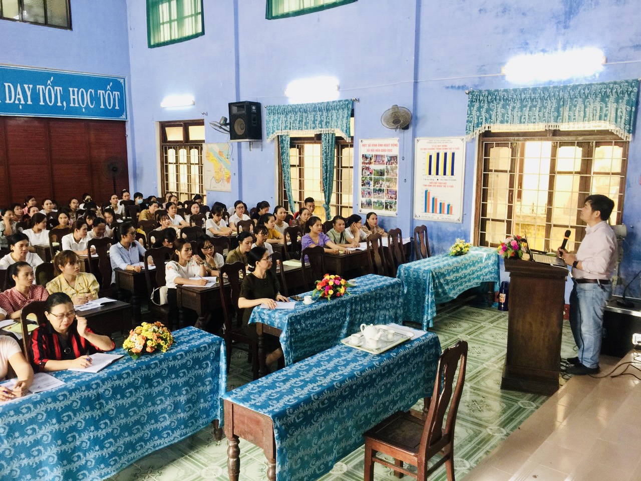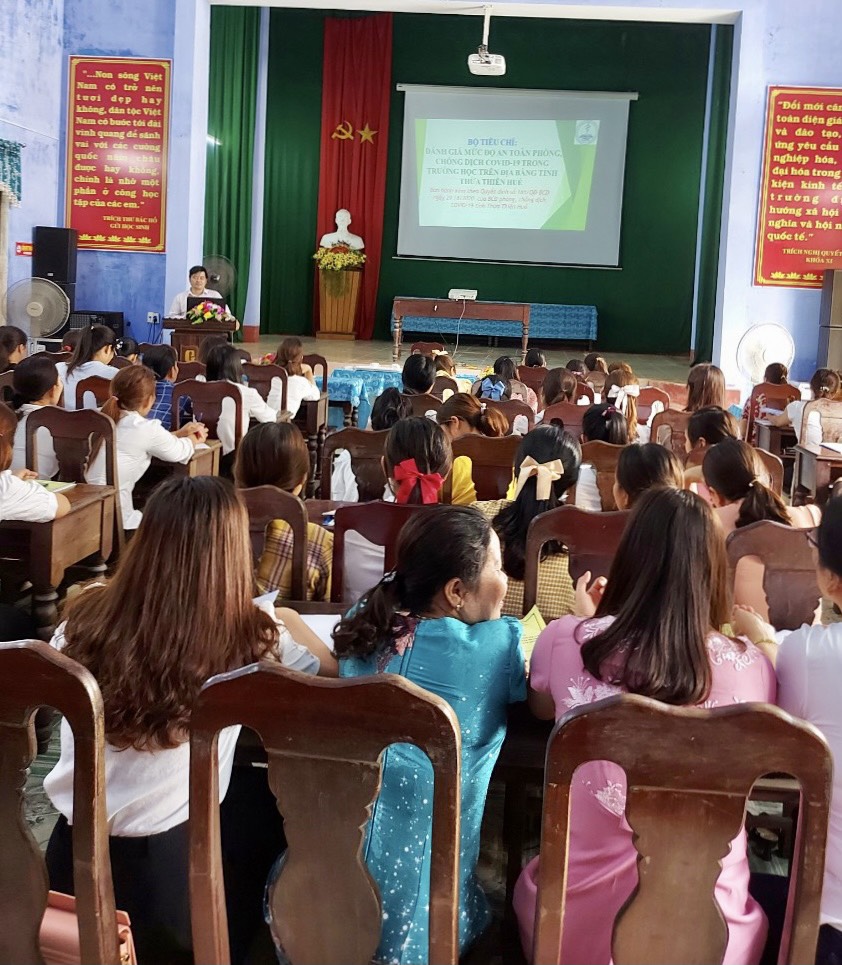 Từ ngày 16-18/4/2021, tại Phòng Giáo dục và Đào tạo huyện Quảng Điền, Trung tâm Kiểm soát bệnh tật tỉnh đã phối hợp tổ chức tập huấn cho 94 giáo viên, nhân viên y tế trường học và Ban giám hiệu của 6 trường mầm non: Kim Thành, Phú Thanh, Đông Phú, Quảng Lợi, Quảng Công và Quảng Ngạn thuộc huyện Quảng Điền.