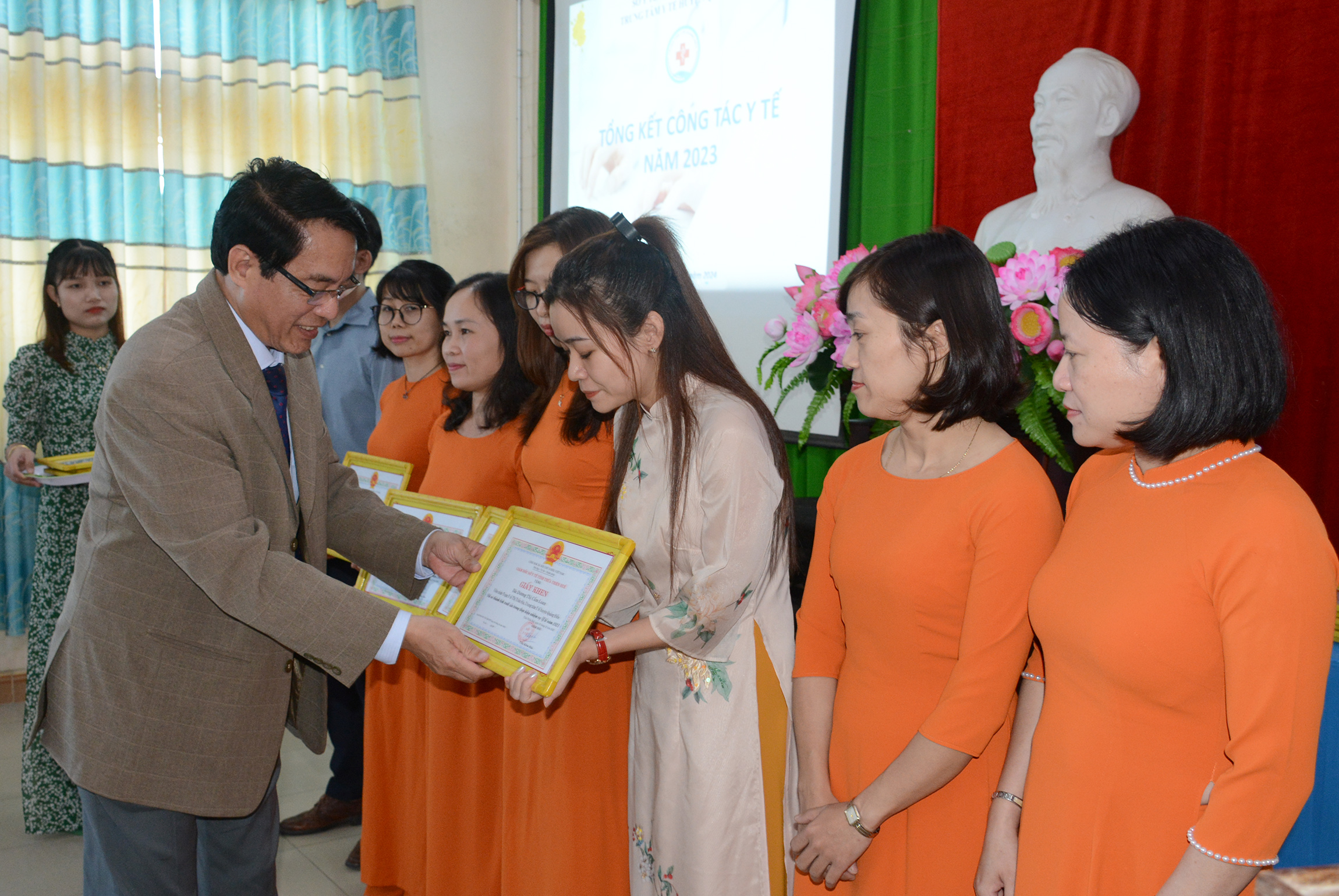 ThS.BSCKII Nguyễn Mậu Duyên - Trưởng Phòng Nghiệp vụ Y thừa ủy quyền GĐ Sở Y tế trao tặng Giấy Khen và công nhận danh hiệu “Chiến sĩ thi đua cấp cơ sở” của GĐ Sở cho các cá nhân có thành tích trong năm 2023.